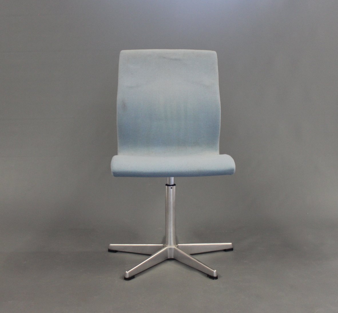 Et par Oxford kontorstole i blåt stof af Arne Jacobsen og Fritz Hansen.