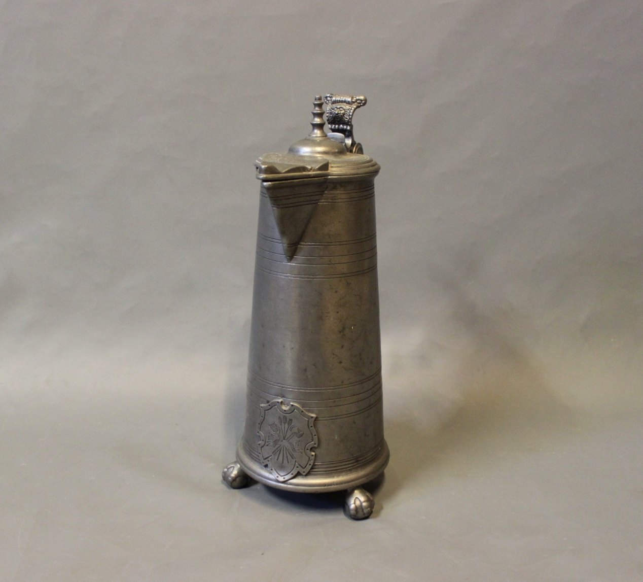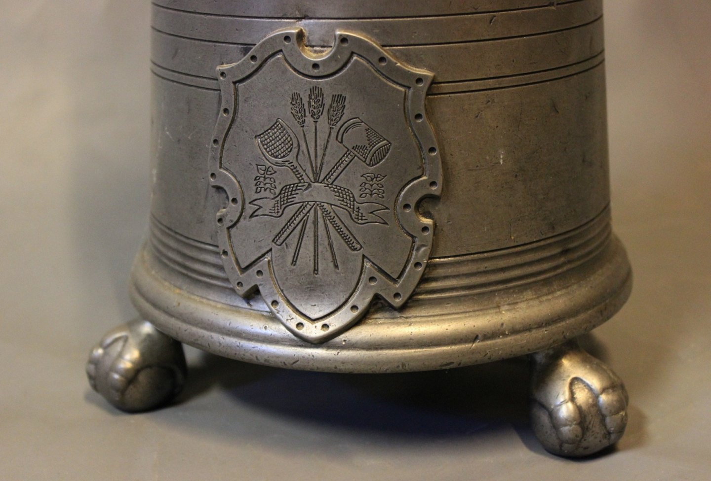 SoldLarge lidded mug in tin from Germany around the year 1780.