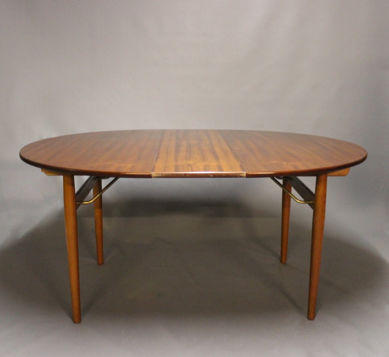 Rundt spisebord med udtræk i teak og ben af eg designet af Hans J. Wegner og fra 1960erne.