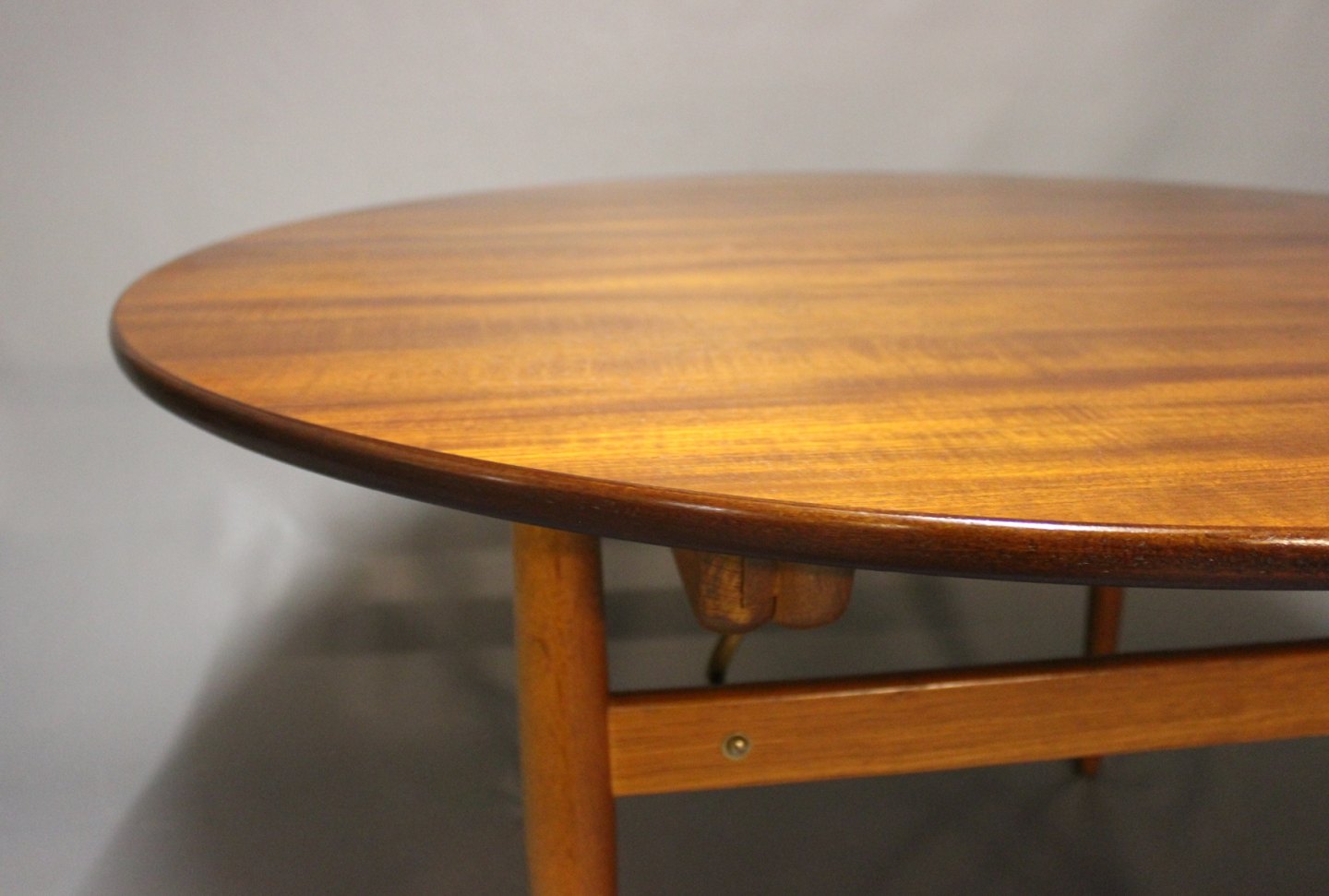 Rundt spisebord med udtræk i teak og eg af Hans J. Wegner fra 1960erne.