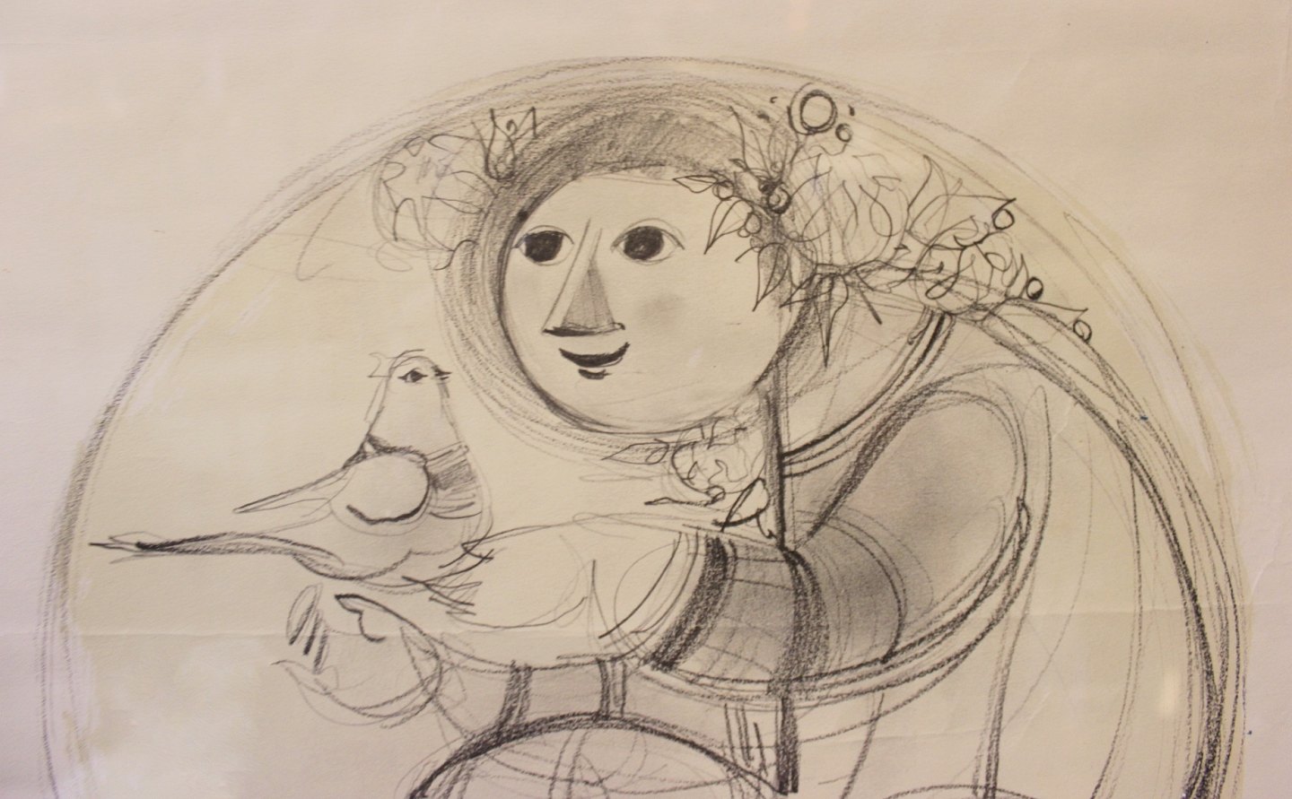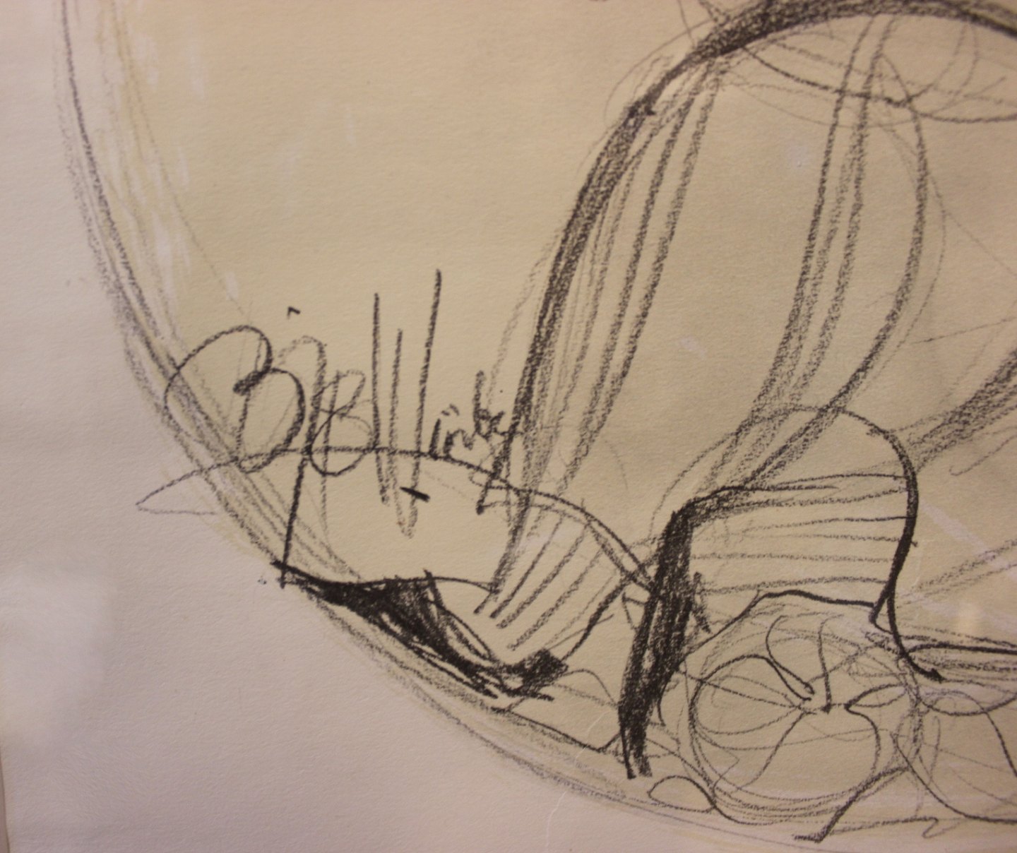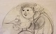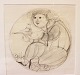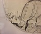 SoldLithographic print of lady with bird signed by Bjørn Wiinblad in silver frame.