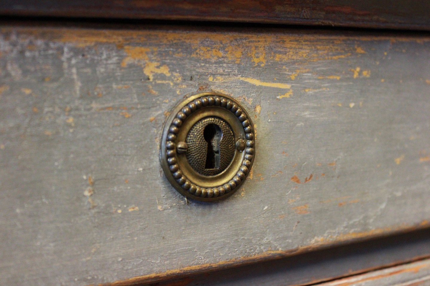 SoldPainted chest of drawers in gray-blue and gustavian from the 1790s.