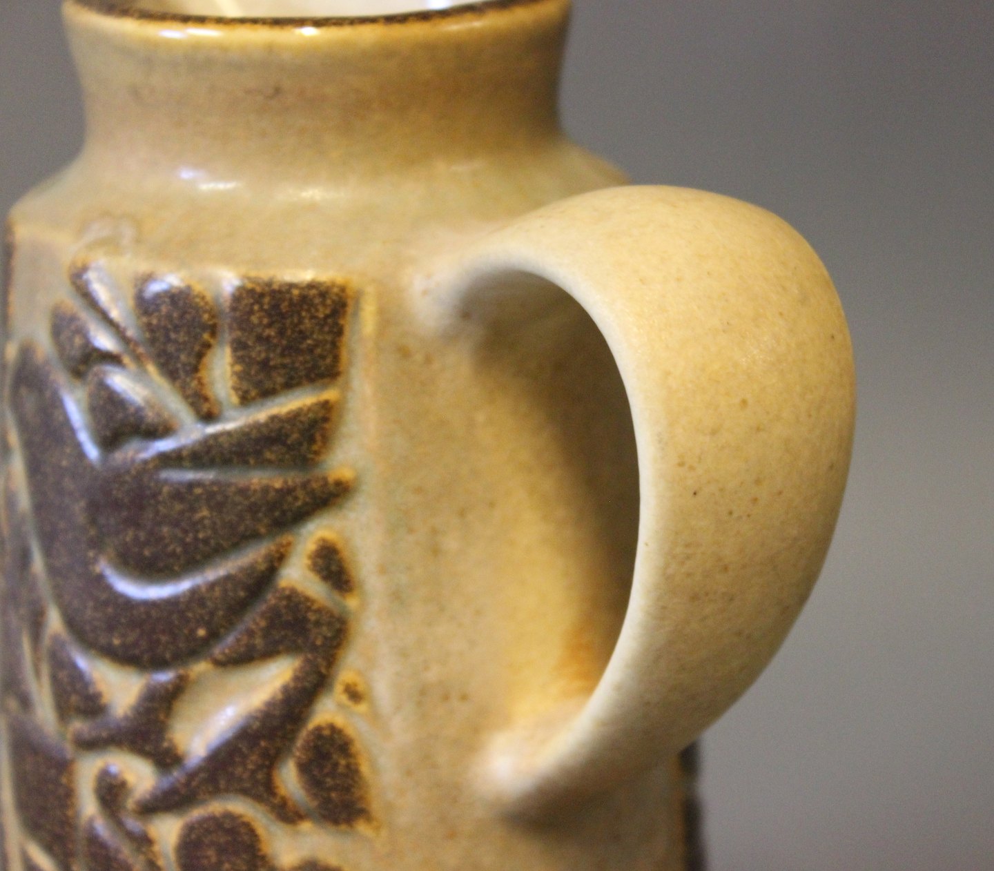 Ceramic jug in brown colors with bird motifs by Michael Andersen & Son, numbered 6427.