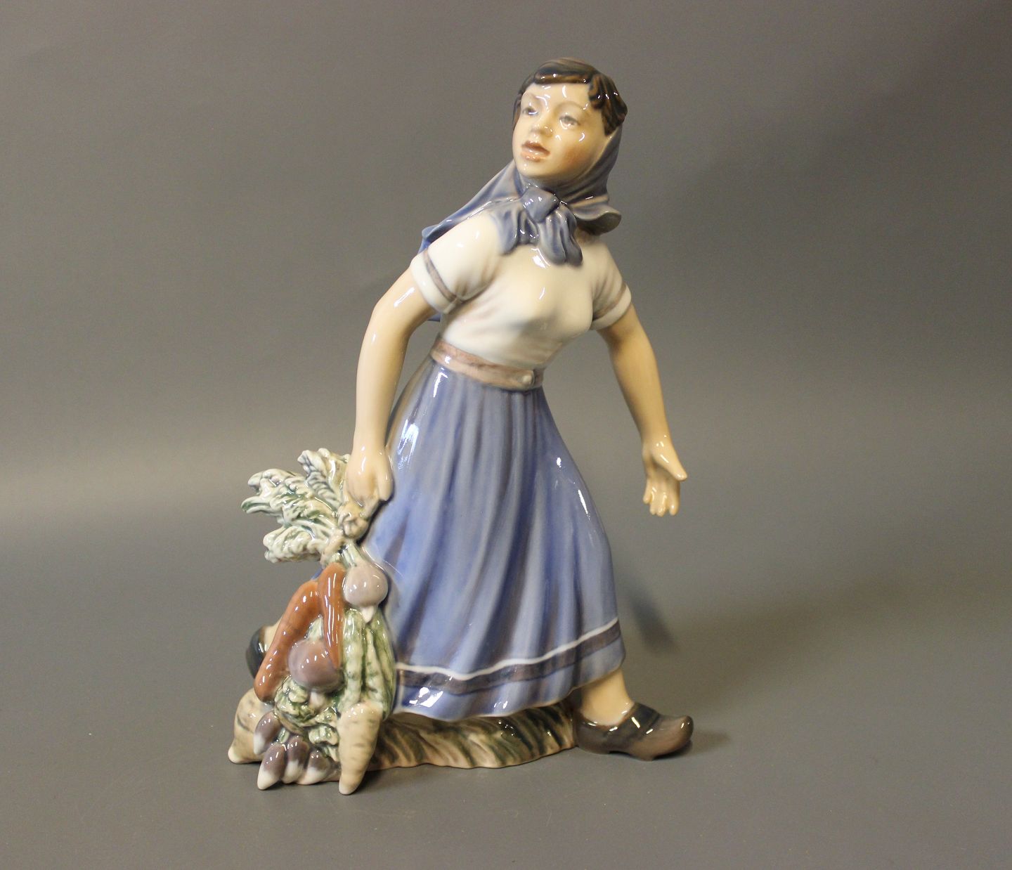Gardener girl with vegetables, no. 1301 by Dahl Jensen.