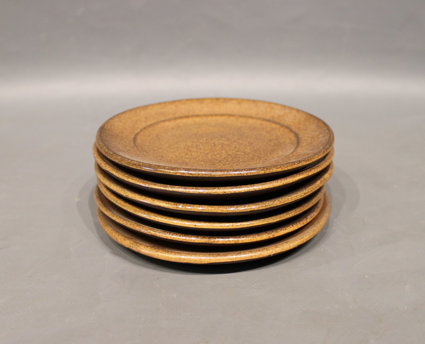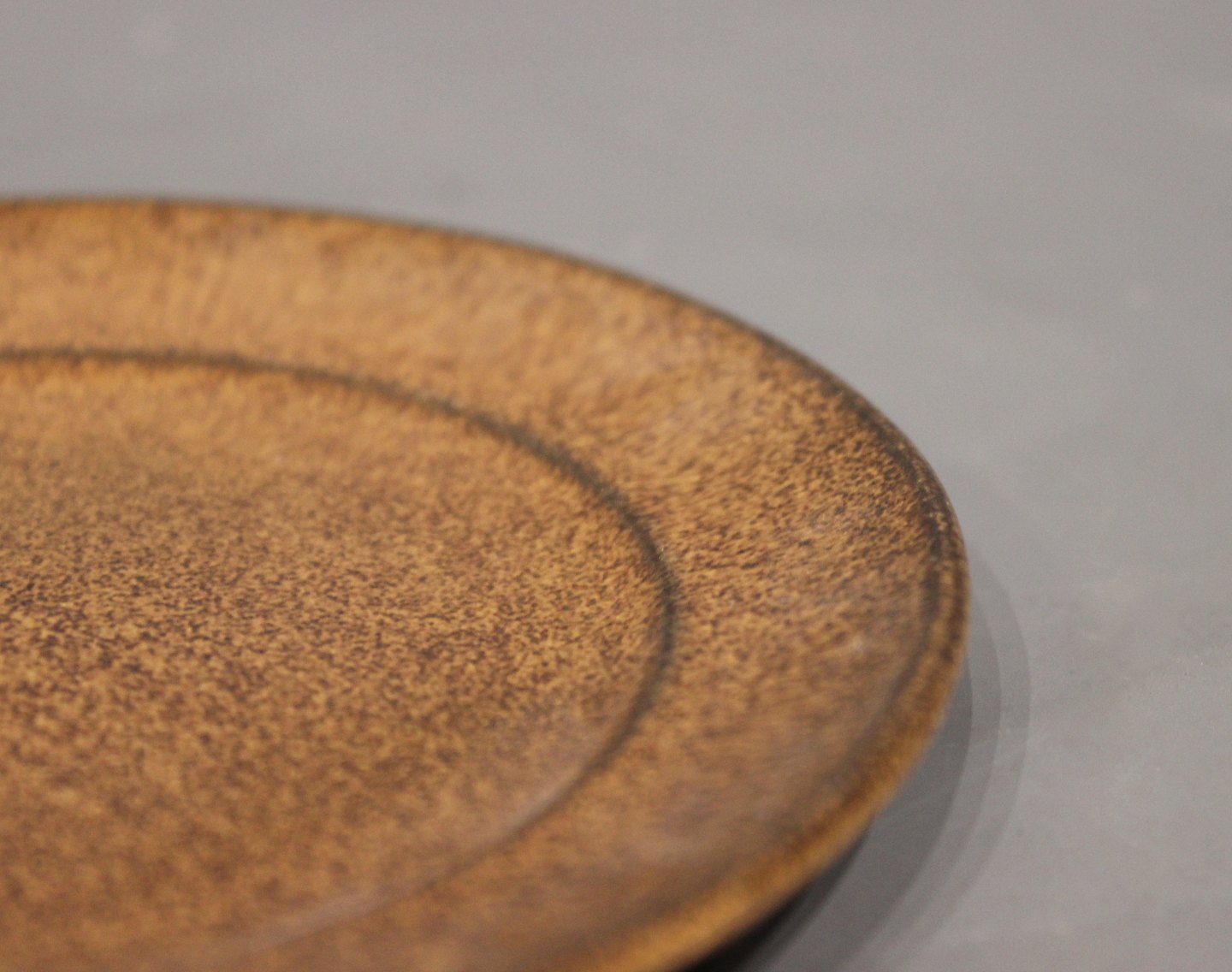 Cake plates and round dish in ceramic with a brown glaze by Viggo Kyhn. The price is for all plates and dish.