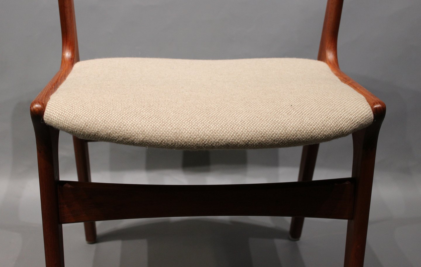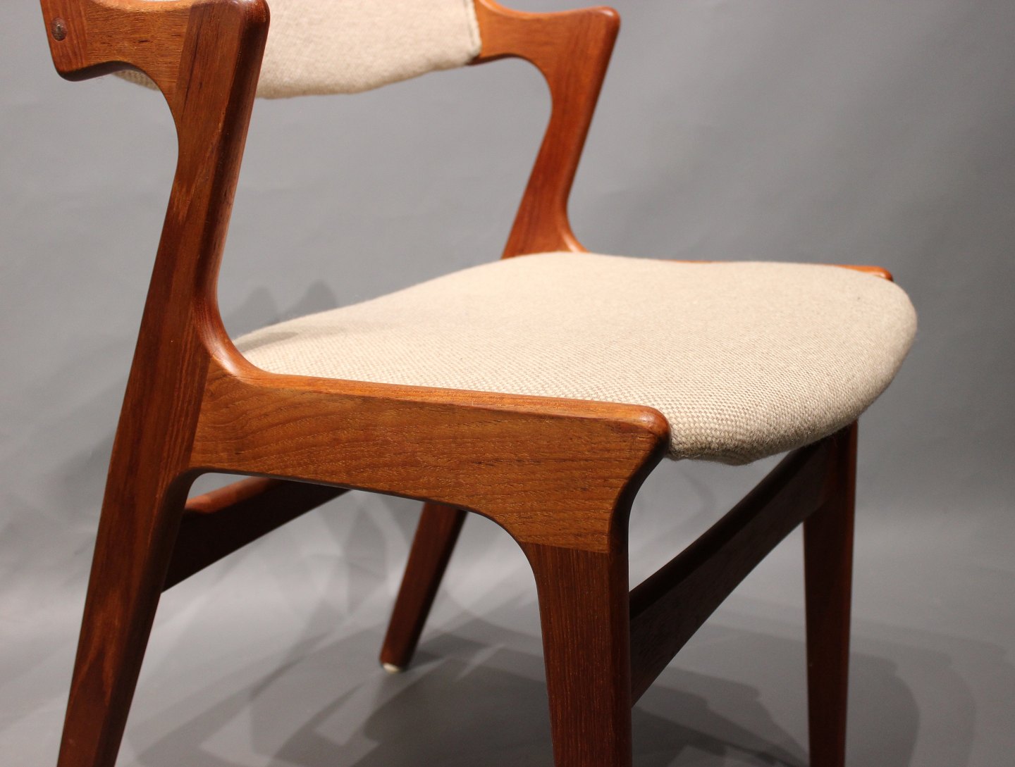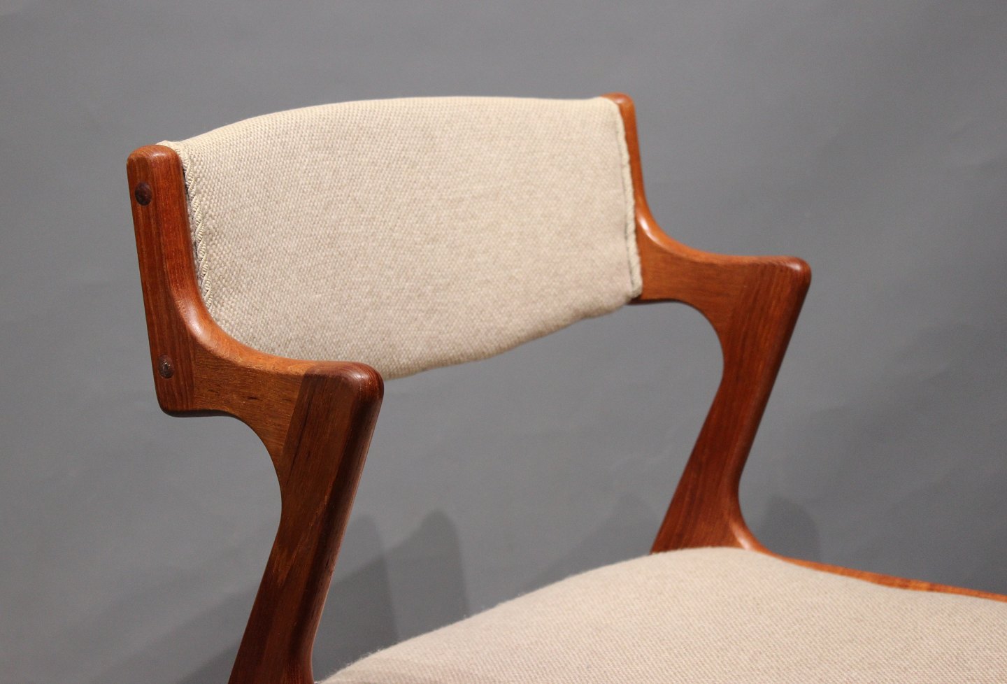 SoldA set of 4 dining chairs in teak and light wool upholstery of danish design from Nova furniture factory and the 1960s. The chairs are in good vintage condition.