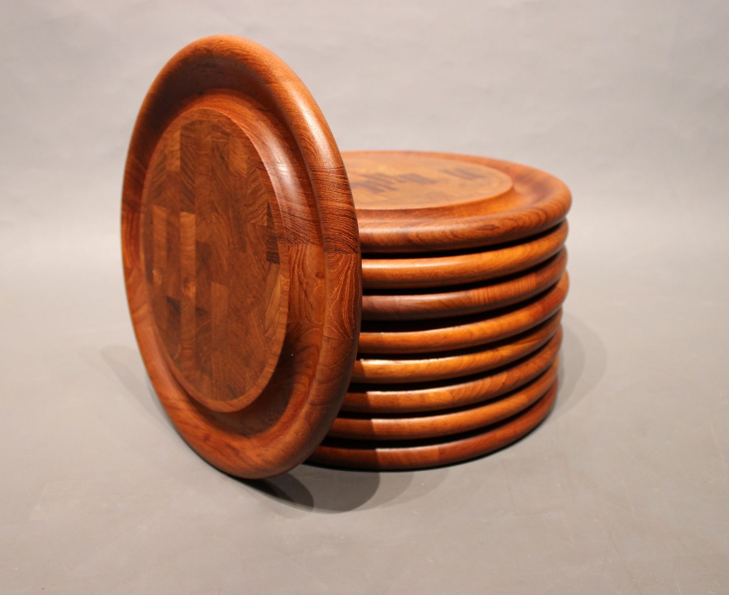 SoldSteak plates in massive teak by Jens Harald Quistgaard and of danish design from the 1960s. We have 9 in stock.