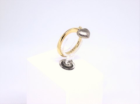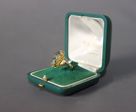 Lille ring i 14 kt. guld med enkel blå sten, stemplet KJa.