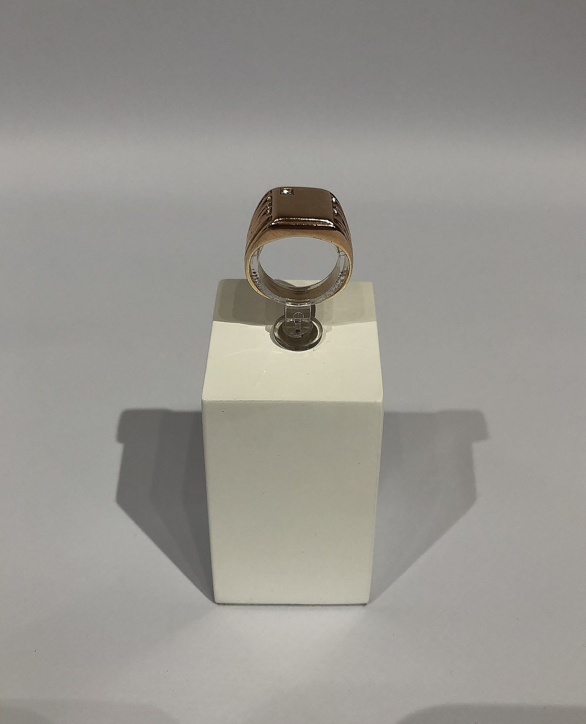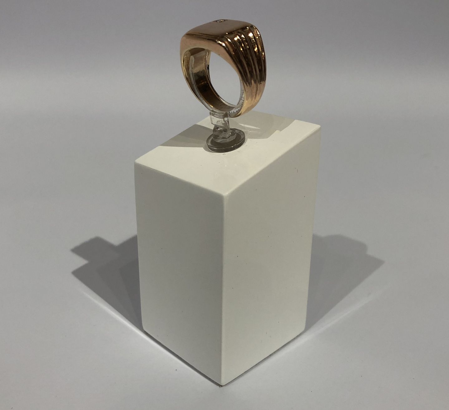 Sold14 ct. gold ring med flat surface and small diamond.