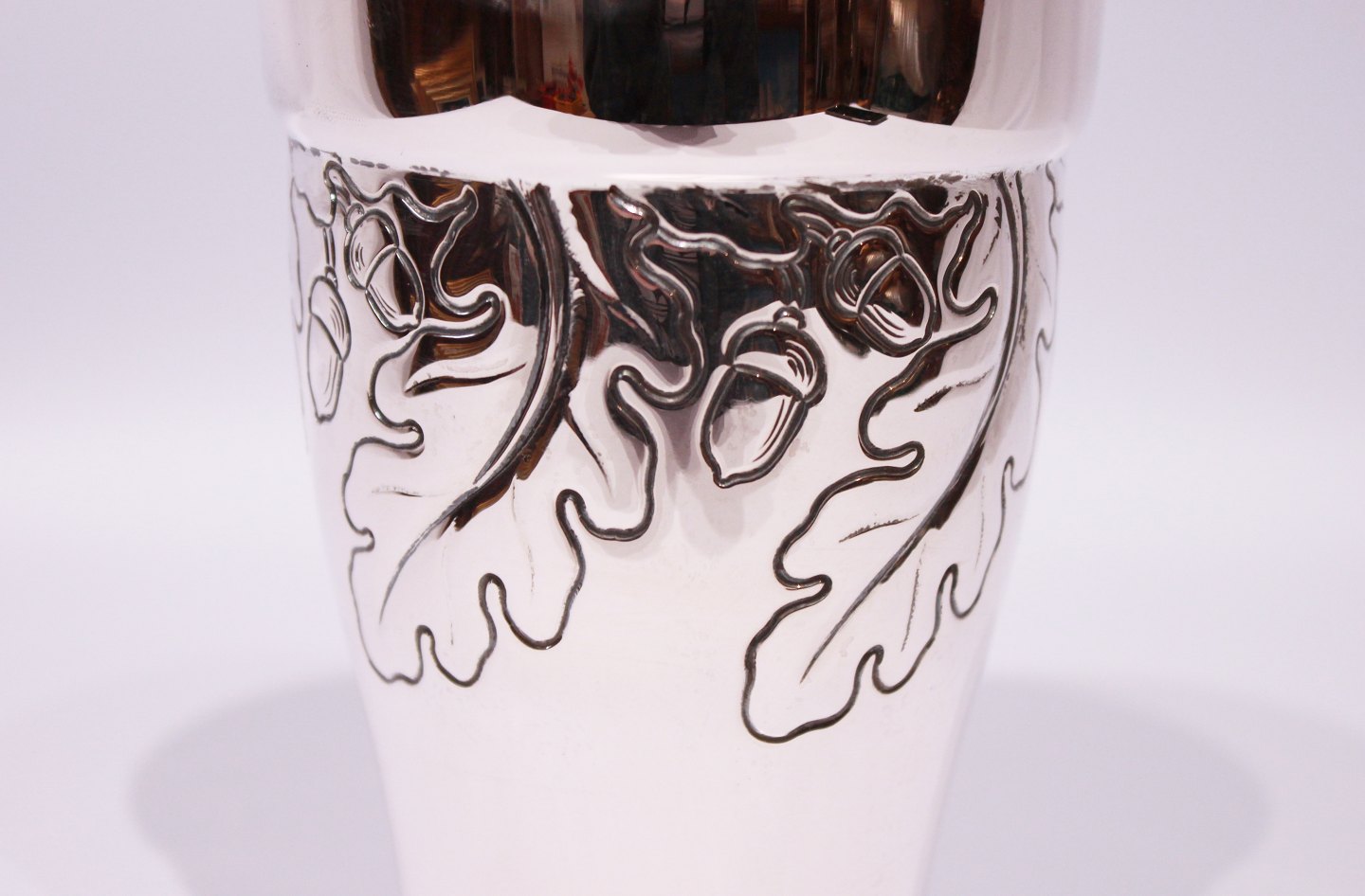 Vase dekoreret med flot Ahornblad- og nøddemotiv, tretårnet sølv.