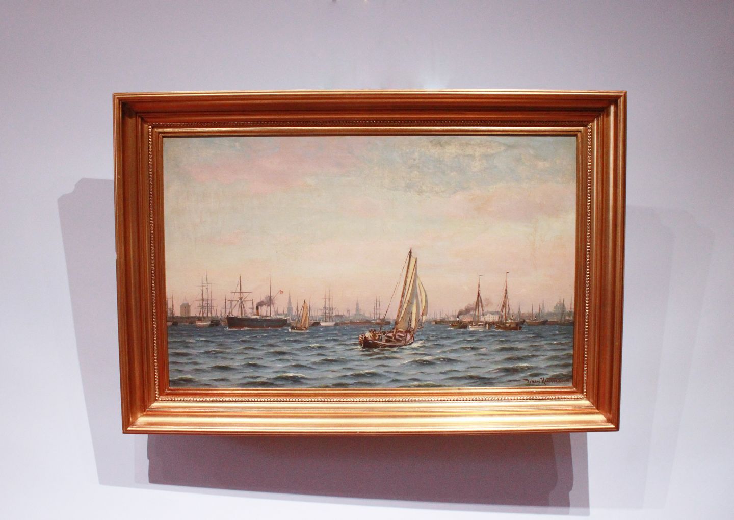 SoldMarine painting with Copenhagen's towers in the background and with gilded frame by Johan Neumann.