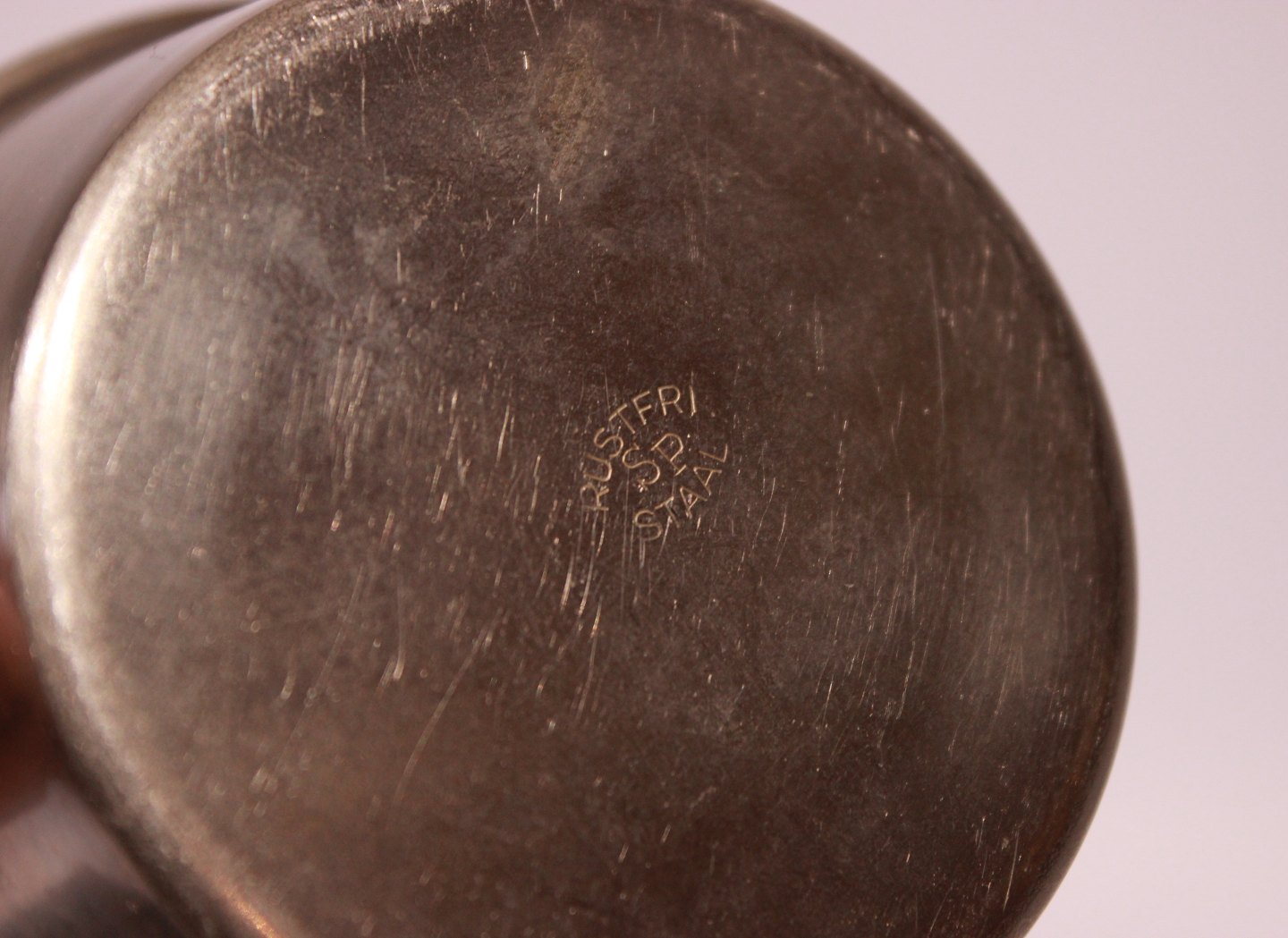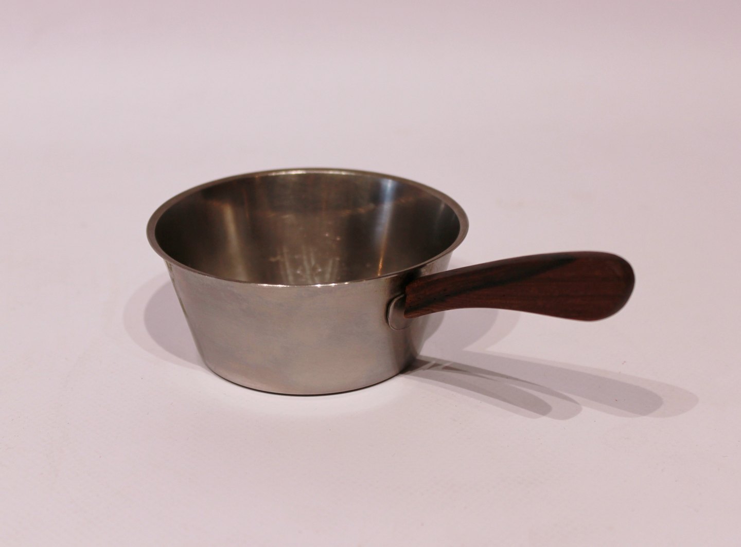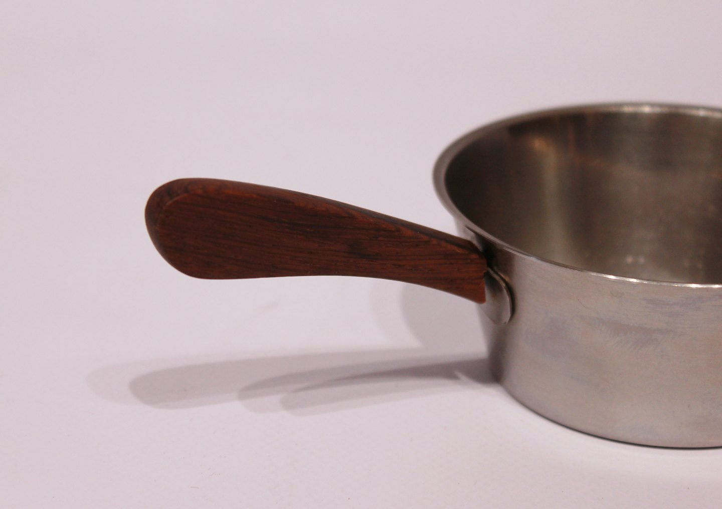 Small tray in stainless steel with teak handle of danish design from the 1960s.