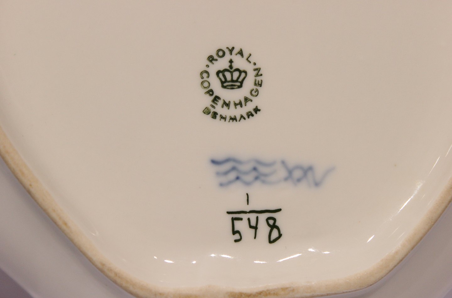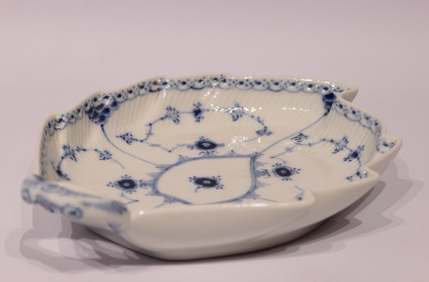 SoldRoyal Copenhagen blue fluted leaf shaped cake dish, #1/548.
