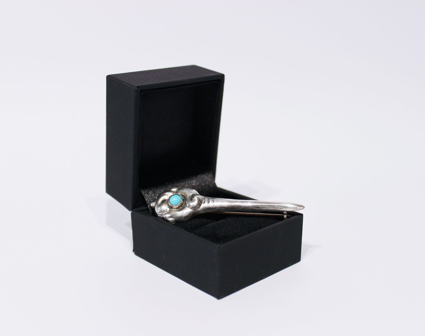 Simpel brooch with small blue stone, in 826 silver, stamped P&P by Petersen & Prahl.