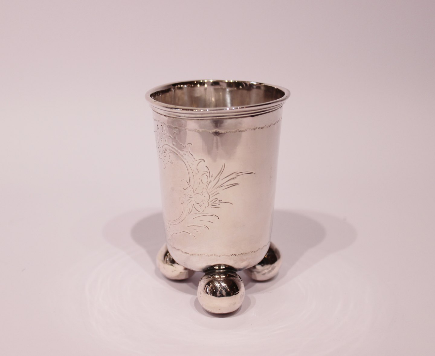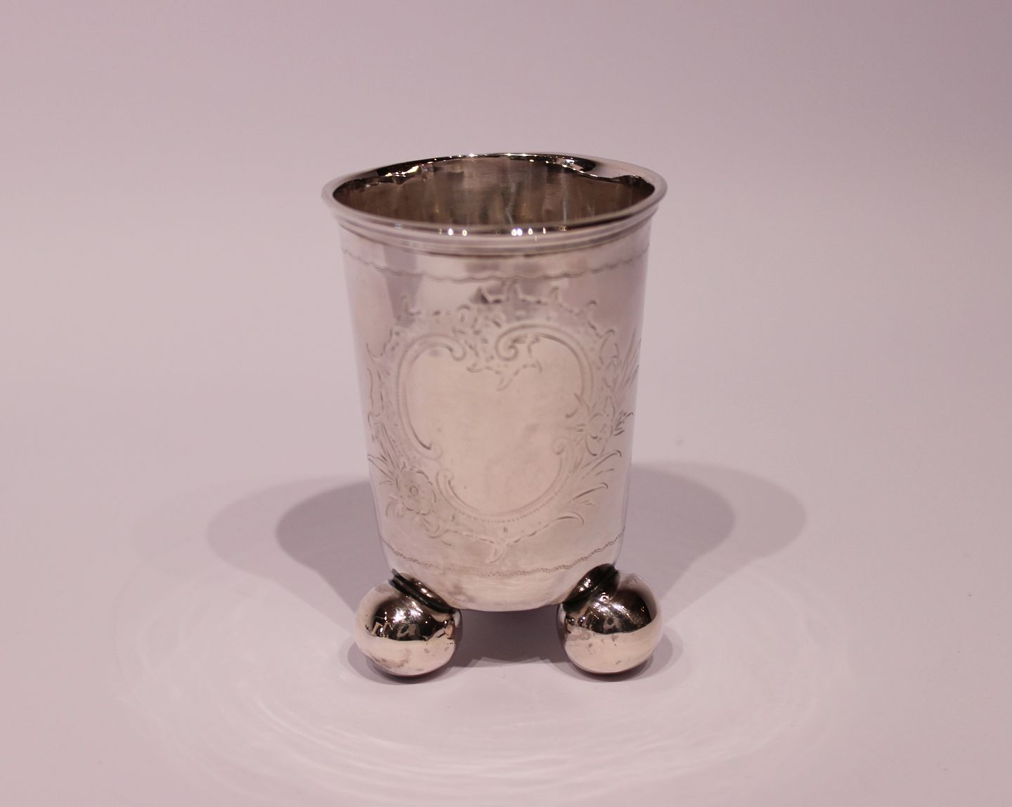 Small cup on round feet decorated with chasings in 830 silver from the start of the 18th century.