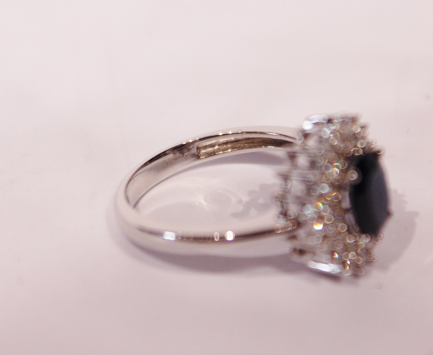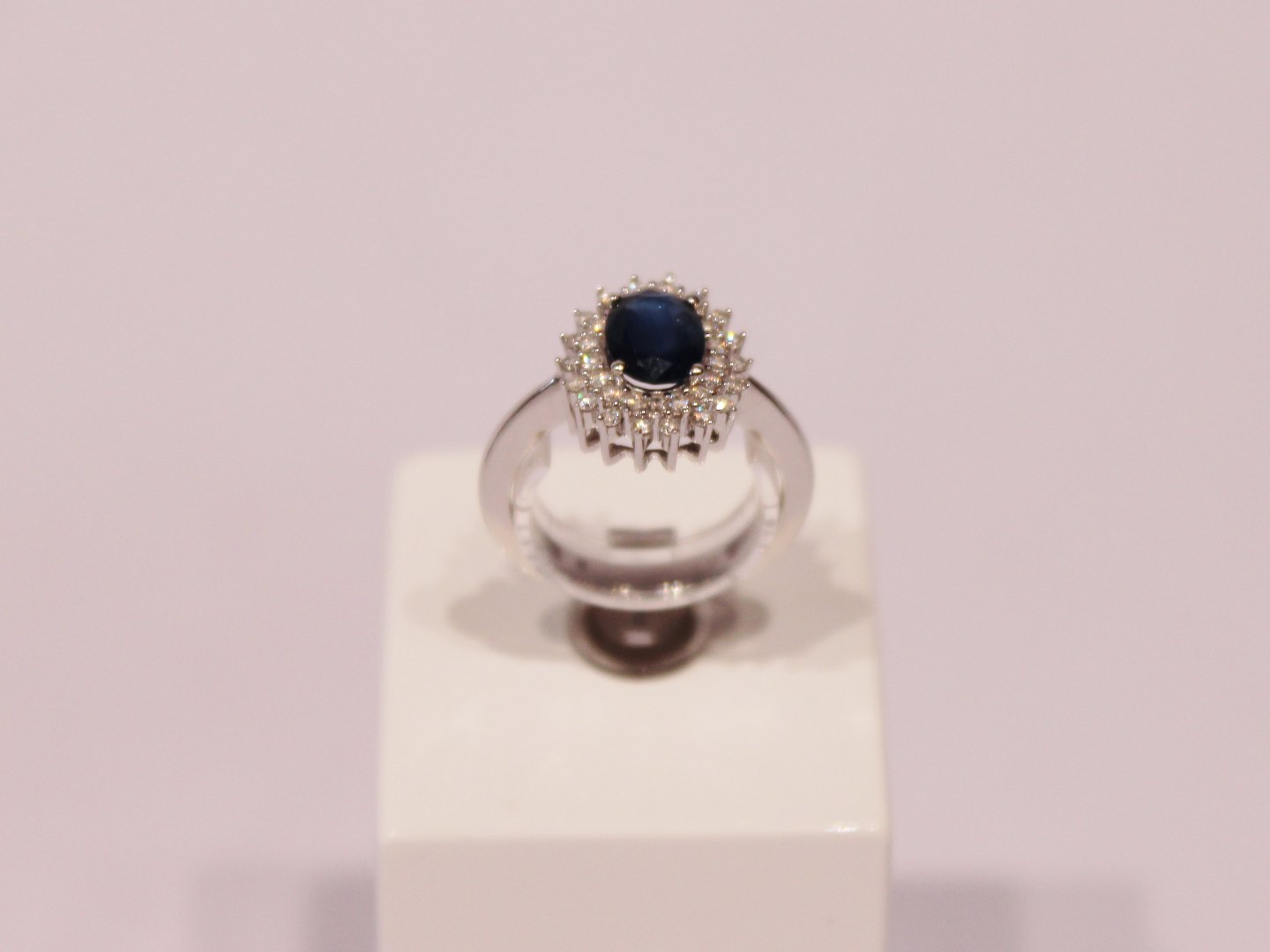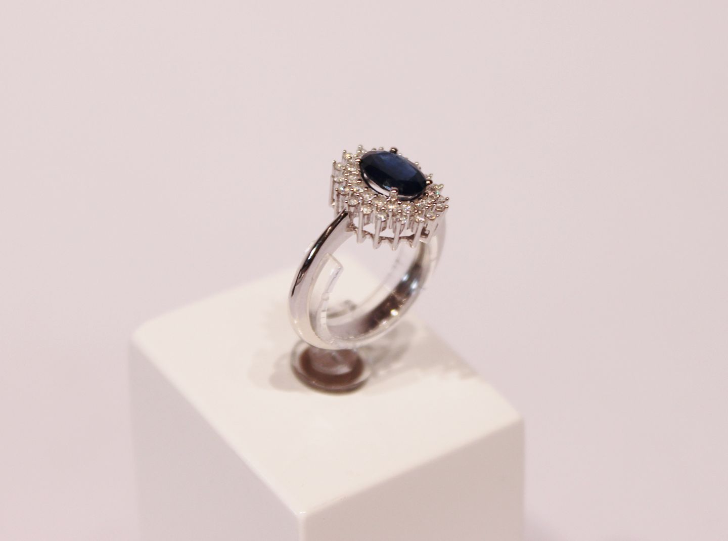 SoldWhite gold ring with 1,9 ct. ovale saphire and 36 diamonds, clarity P1-P2 Wesselton.