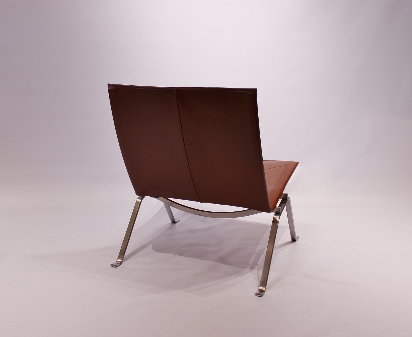 SoldEasy chair, model PK22, designed by Poul Kjærholm and manufactured by Fritz Hansen in 2016. The chair is with original upholstery in walnut elgance leather and frame of chrome.