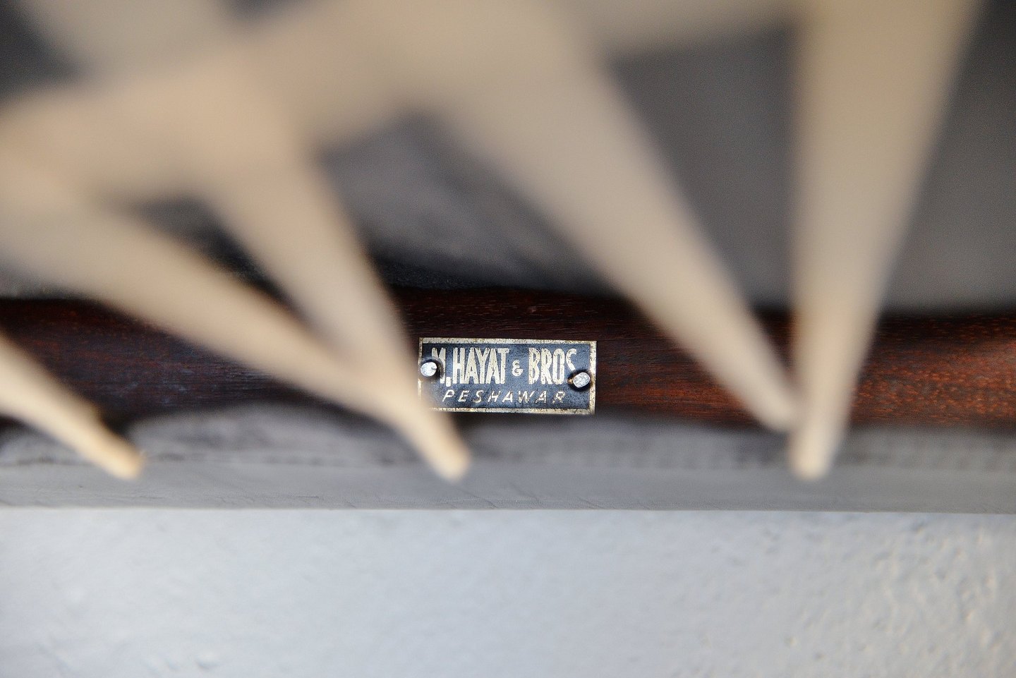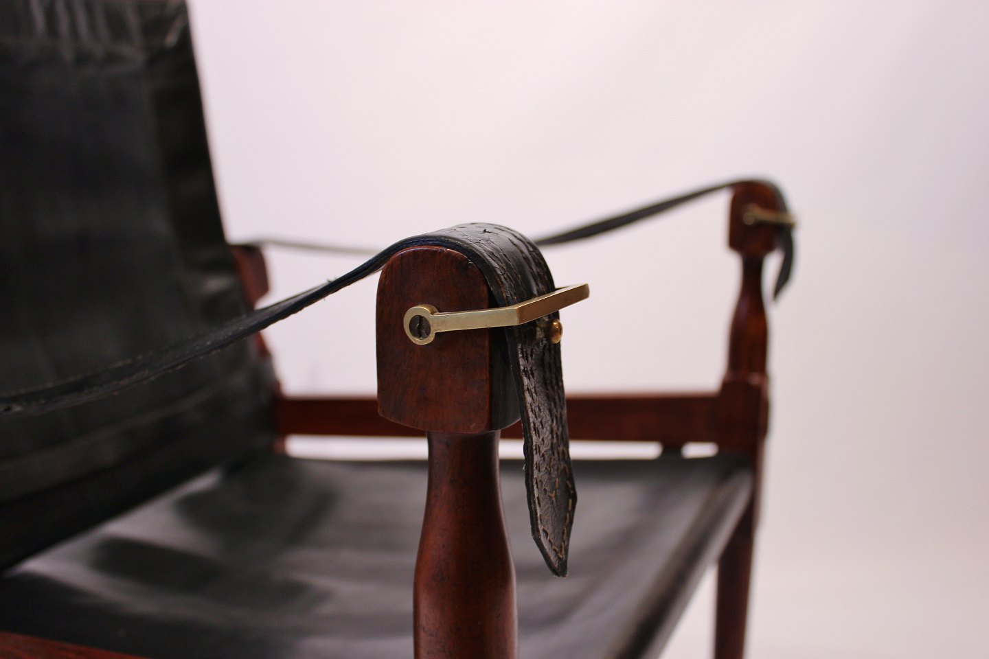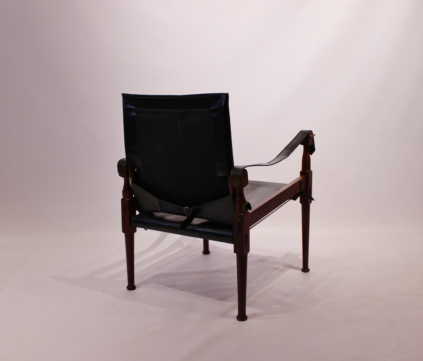 SolgtEt par Safari stole af M. Hayat & Brothers i valnød og sort patineret kernelæder fra Pakistan omkring 1970erne. Stolene er i flot brugt stand.