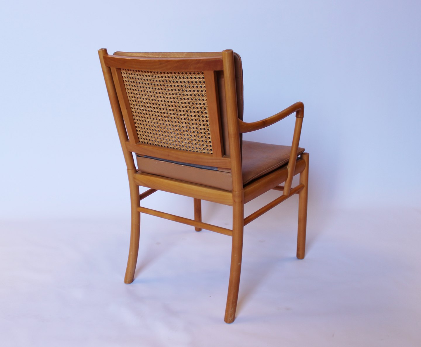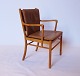 SolgtArmstol, model PJ-301, i mahogni og hynder af lysebrunt patineret læder designet af Ole Wanscher og fremstillet af PJ Møbler i 1960erne.