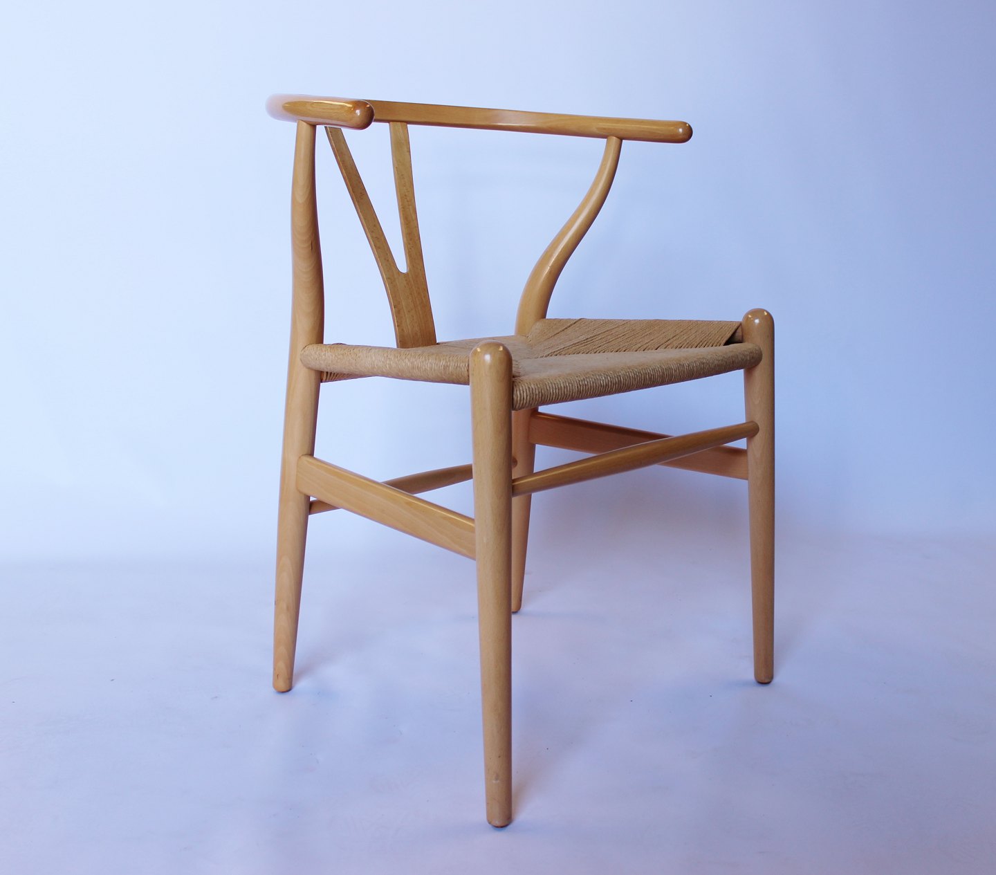 SoldSet of 2 Y-chairs, model CH24, in beech and paper cord designed by Hans J. Wegner and manufactured by Carl Hansen & Son in the 1980s.