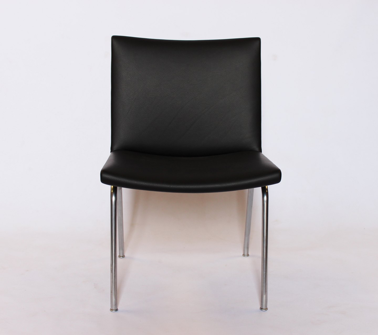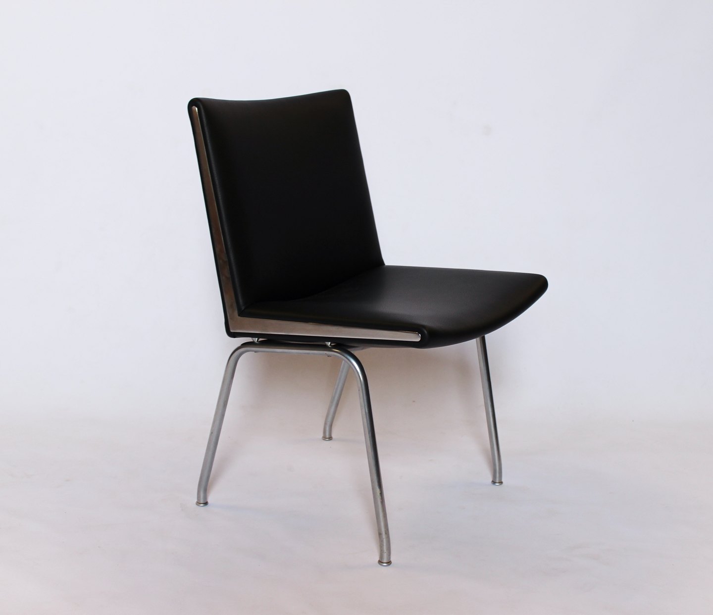 SoldSet of 4 "Airport-chairs", model AP37, designed by Hans J. Wegner and manufactured by AP Stolen in the 1950s. The chairs are newly upholstered in black classic leather.