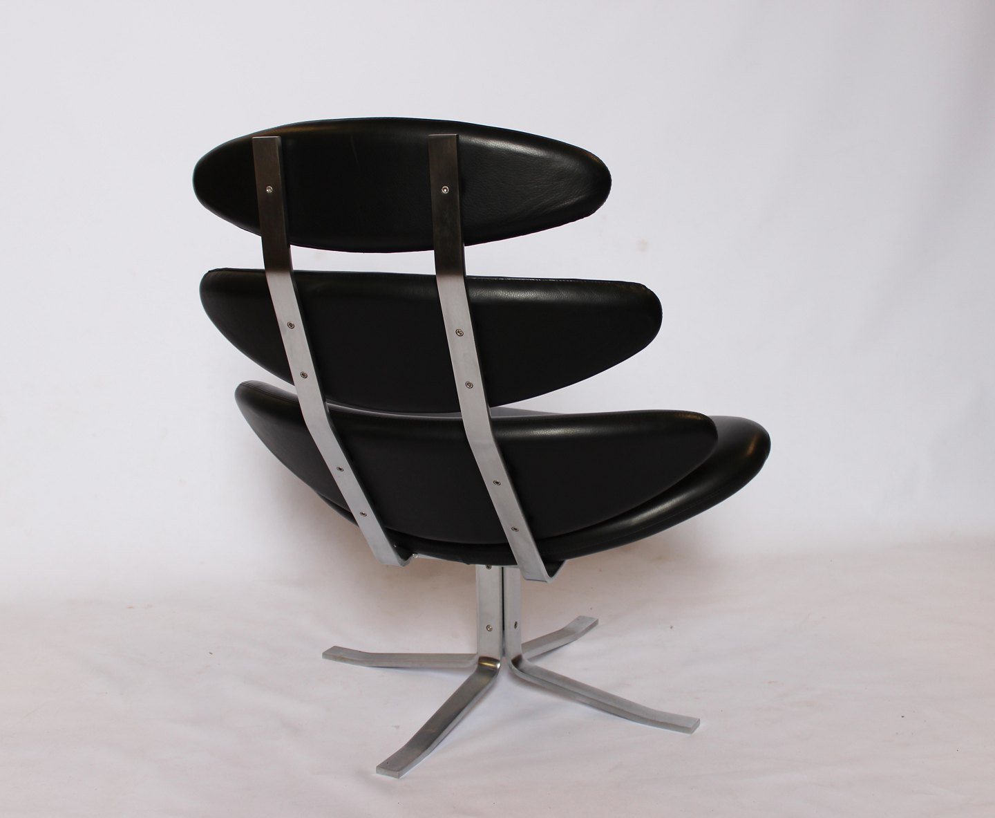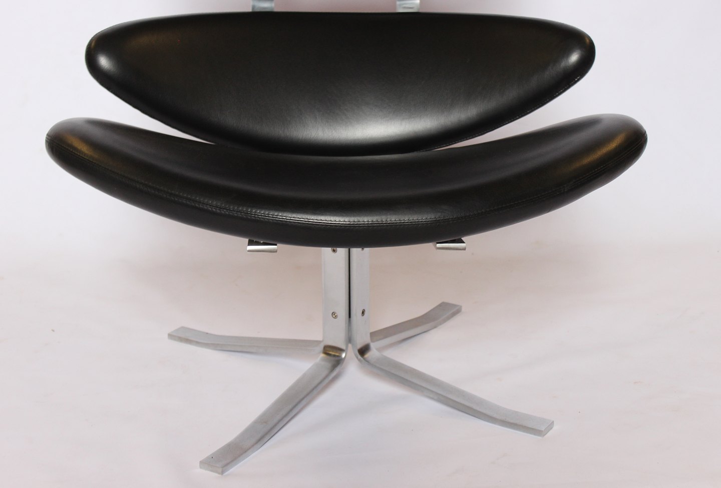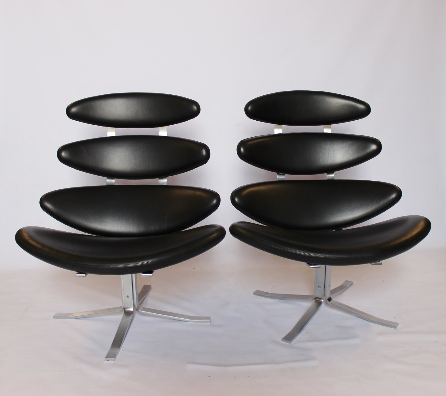 Set of two Corona easy chairs, model EJ 5, in black Cava leather, by Poul M. Volther and Erik Jørgensen.