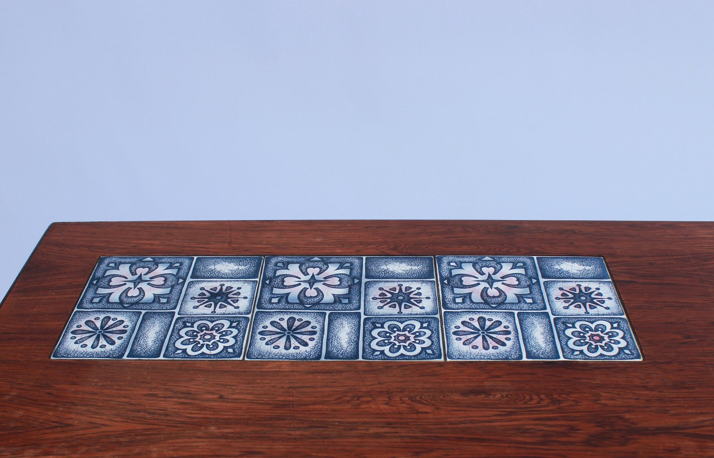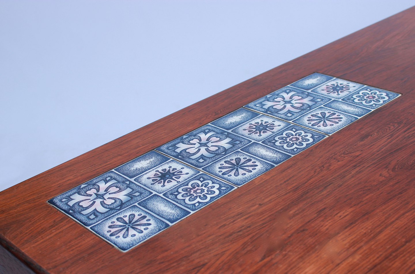 Coffeetable in rosewood with Royal Copenhagen tiles designed by Johannes Andersen and manufactured by Silkeborg Furniture Factory in 1960s. The table is in great vintage condition.
