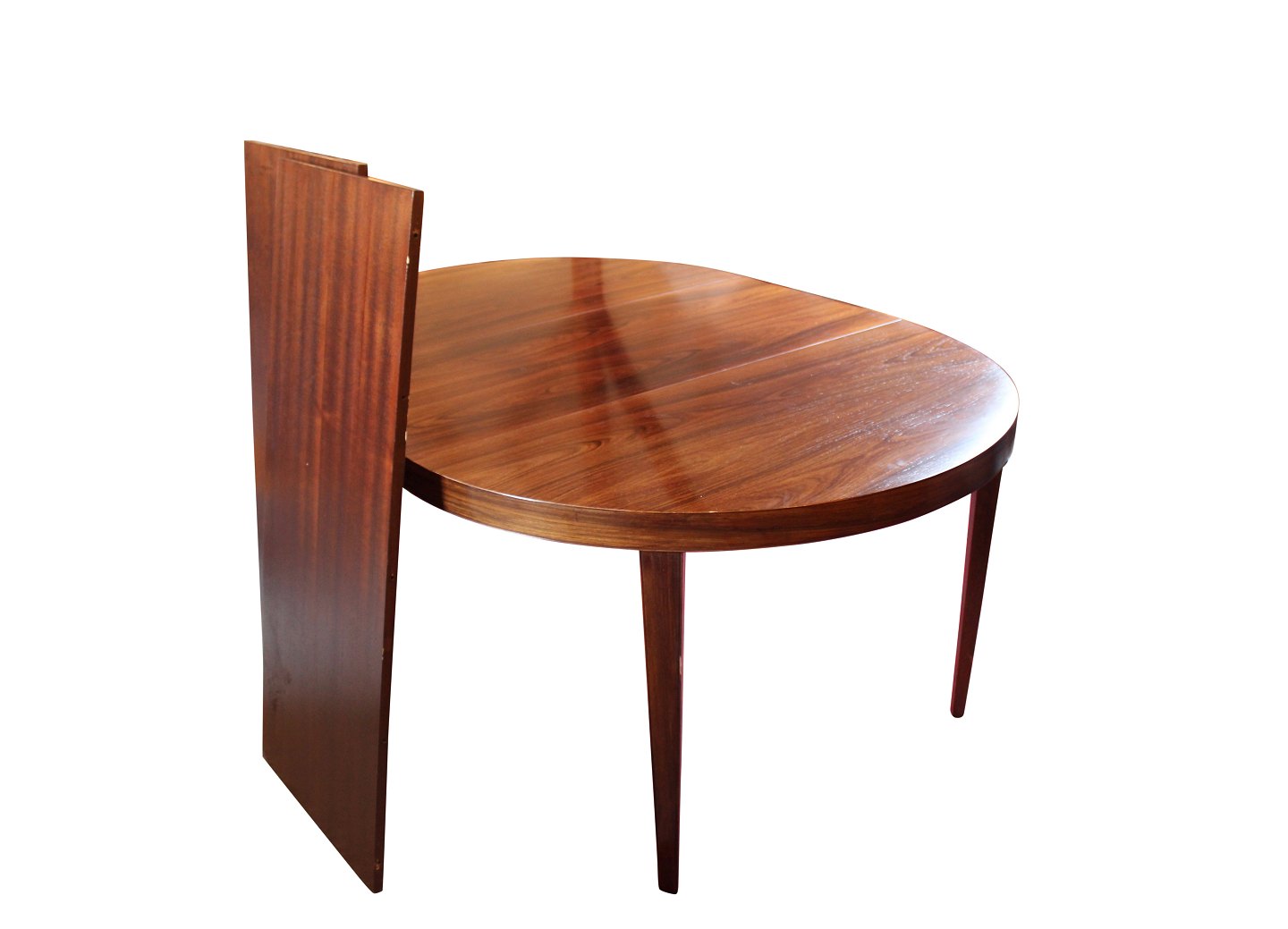 Large dining table with 3 extension leaves of rosewood designed by Severin Hansen for Haslev furniture factory in the 1960s. The table is in great vintage condition.