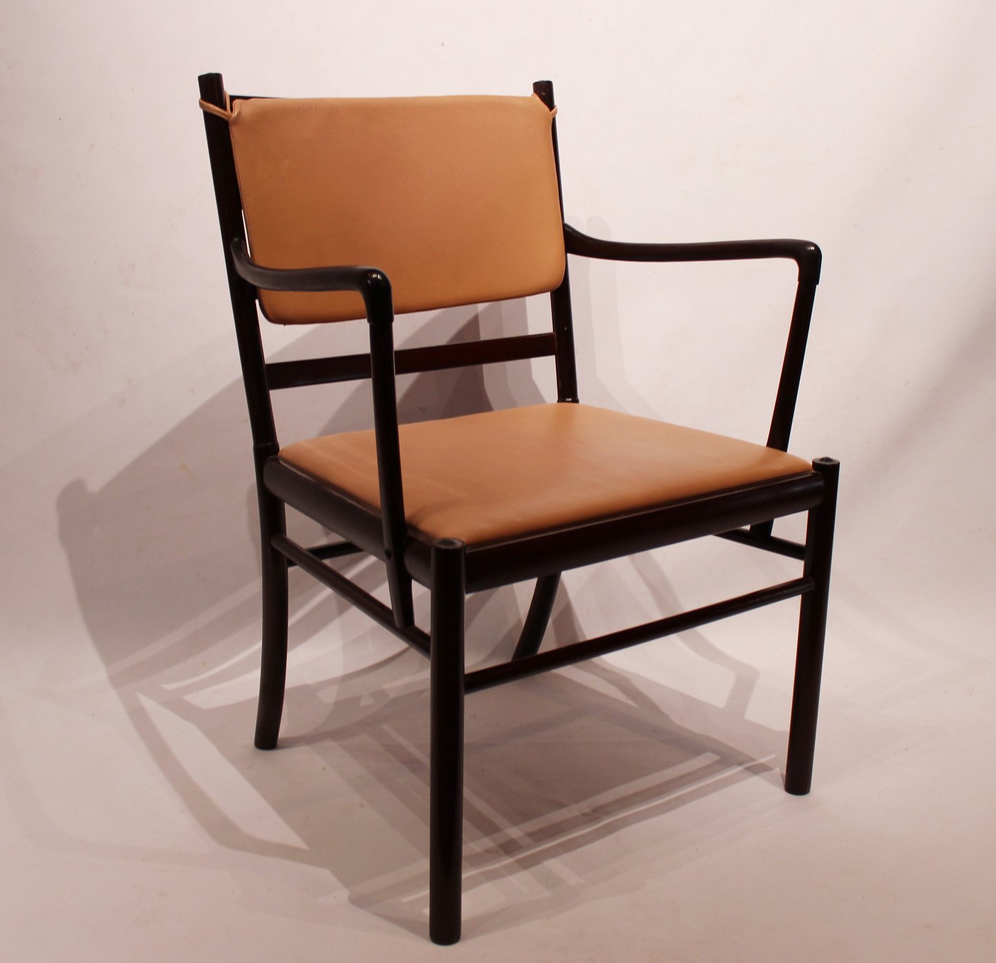SoldArmchair in mahogany and light brown leather designed by Ole Wanscher and manufactured by P. Jeppesen. The chair is in great vintage condition.