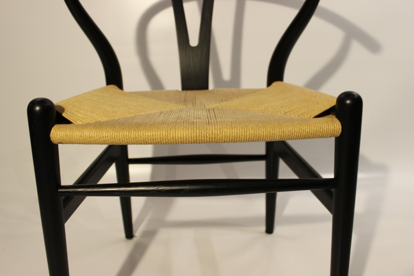 SoldA pair of wishbone chairs, Y-chair, model CH24, designed by Hans J. Wegner in the 1950s and manufactured by Carl Hansen & Son in 2008. The chairs are with papercord seat and black painted ash.