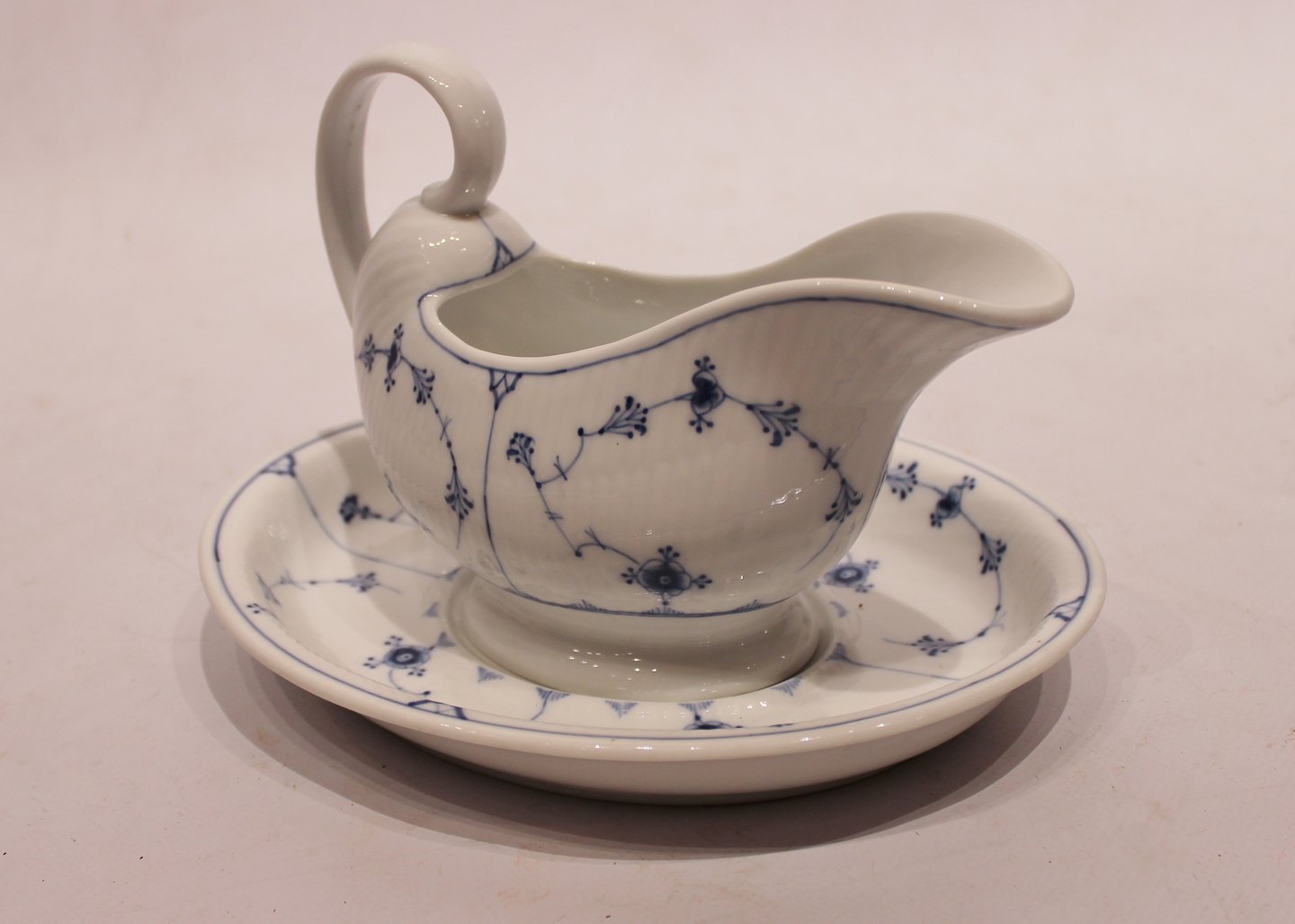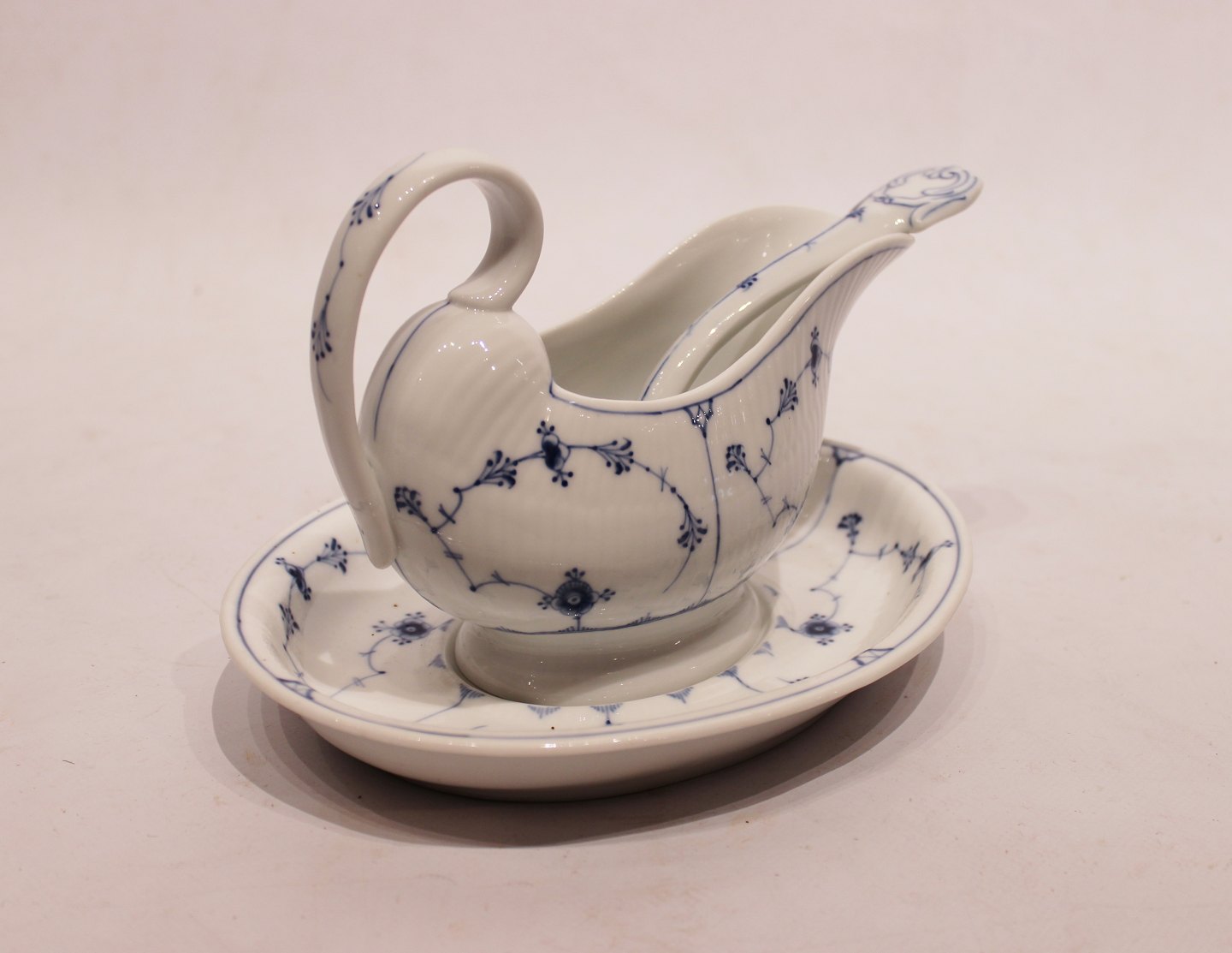 SoldRoyal Copenhagen blue fluted sauce boat, with saucer and server.