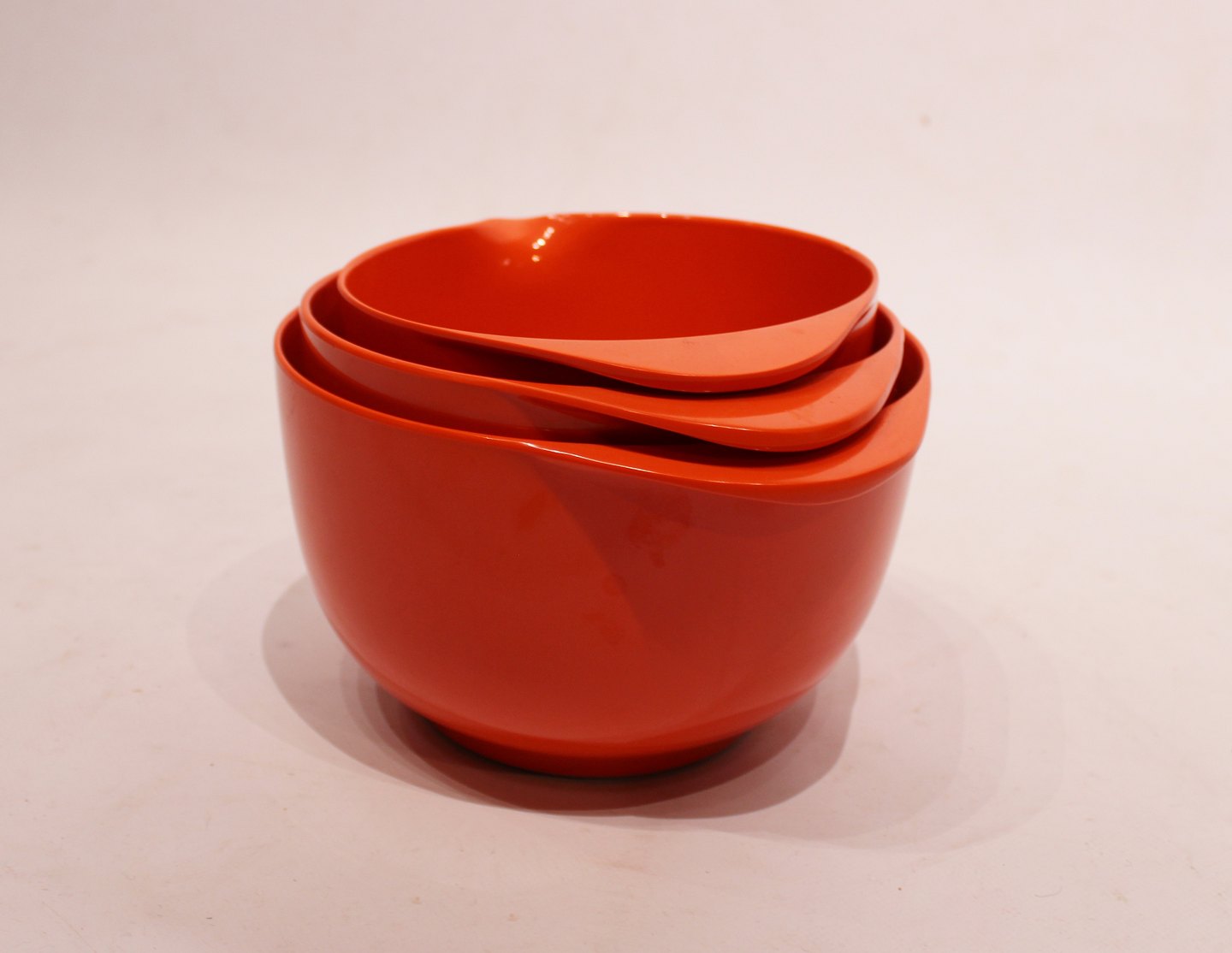 Set of Magrethe bowls by Rösti in orange and different sizes from the 1960s.