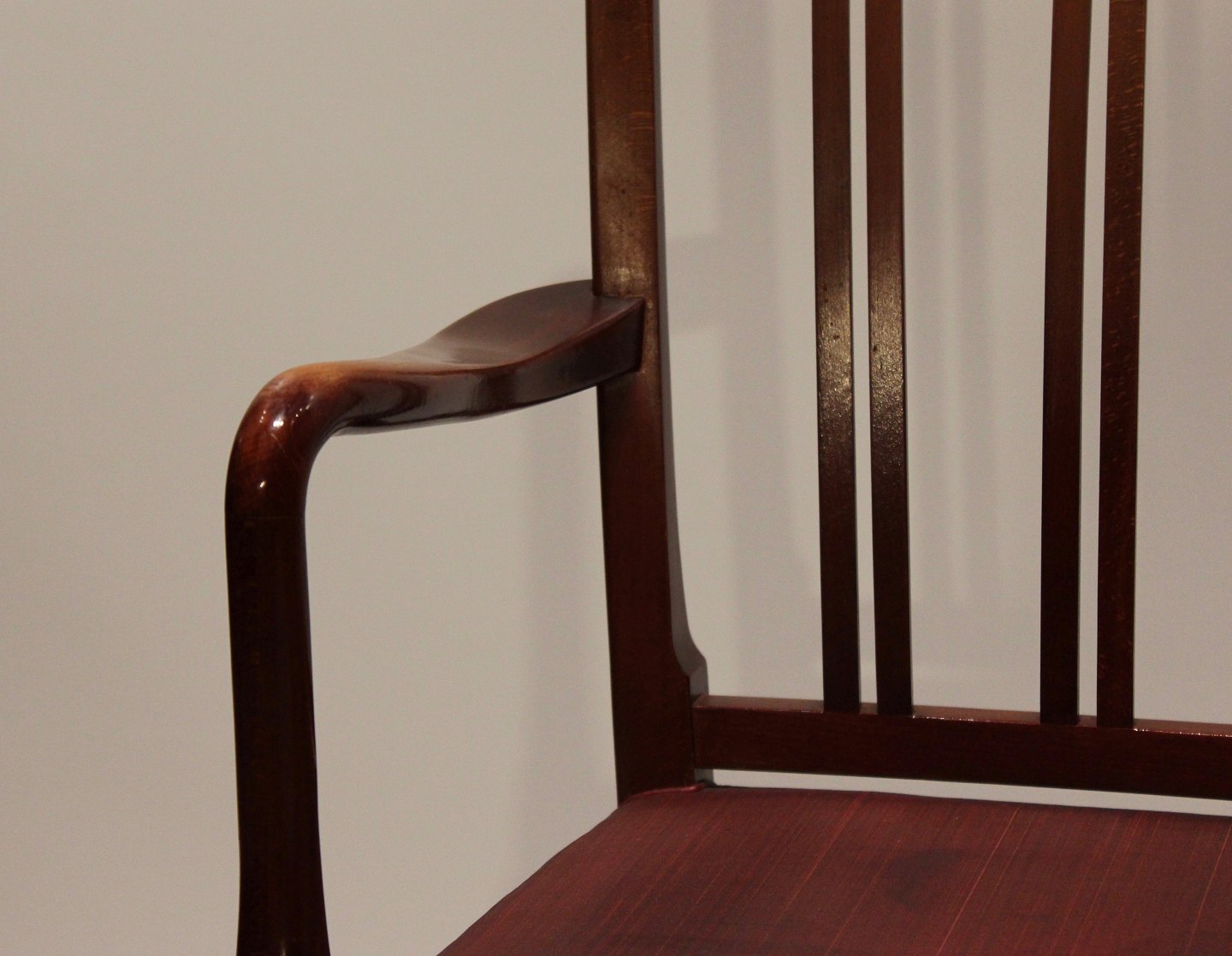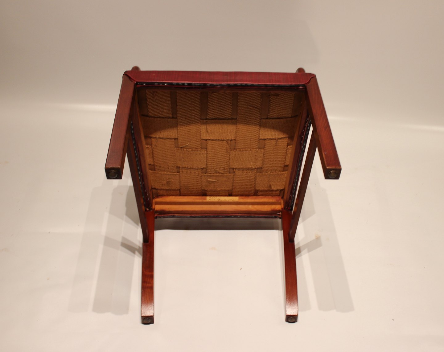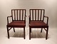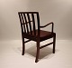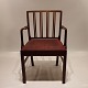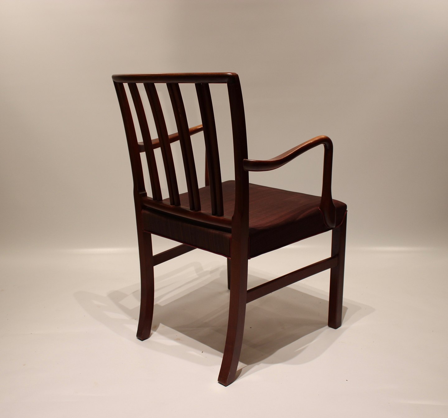 These armchairs exude timeless elegance and sophistication, with their mahogany wood construction and red fabric upholstery. They were designed by the iconic Danish furniture designer Fritz Hansen in the 1930s and are a true masterpiece of Danish furniture design.