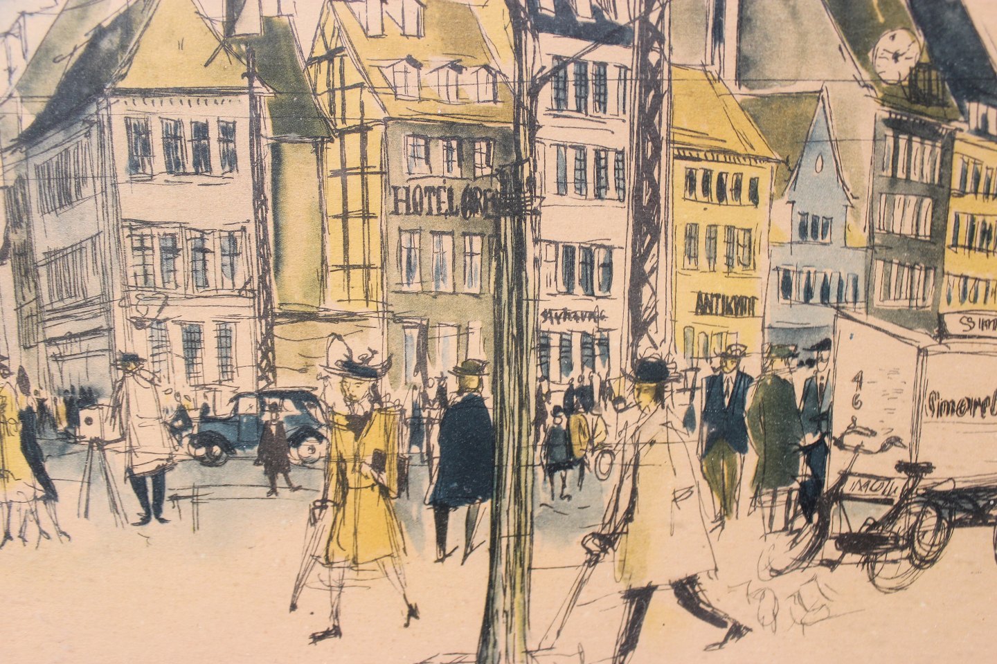 Tegning af Kongens Nytorv mod Nyhavn, Kjøbenhavn fra November 1946 signeret Victor Weinrich.