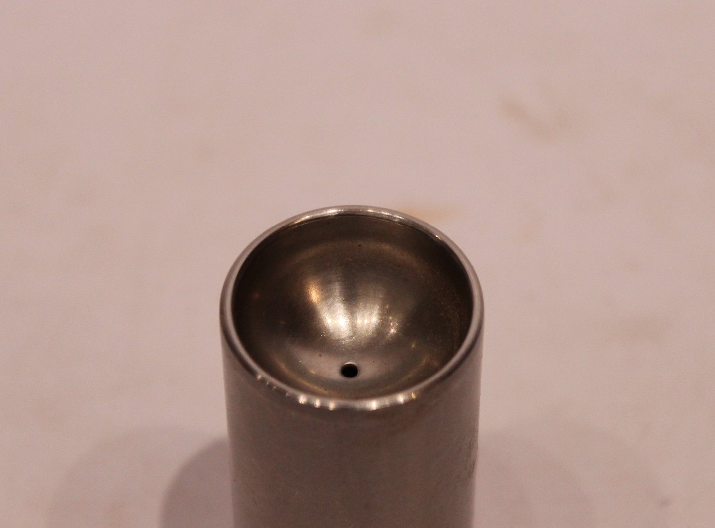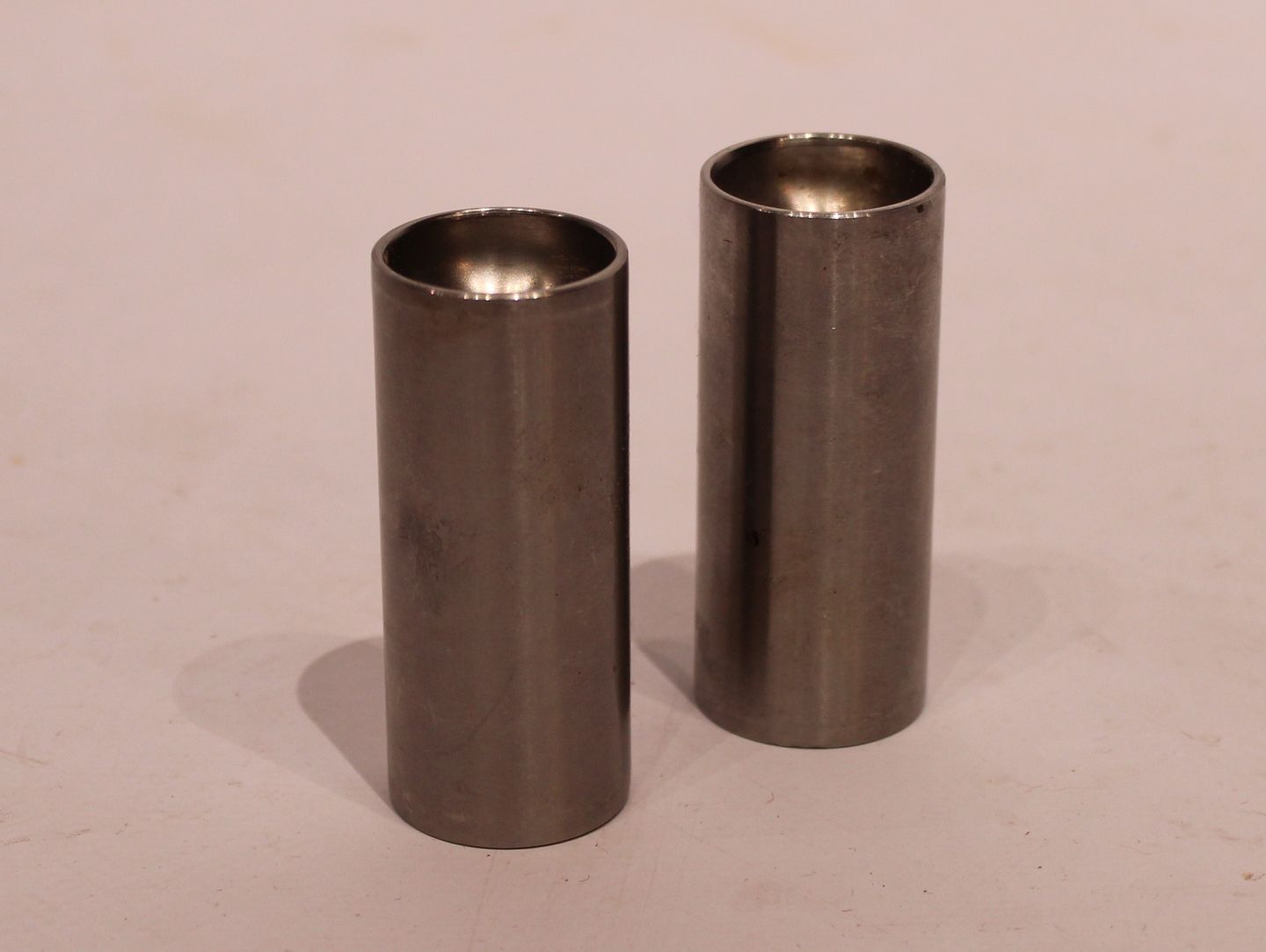 A pair of salt and pepper shakers in stainless steel by Stelton.
