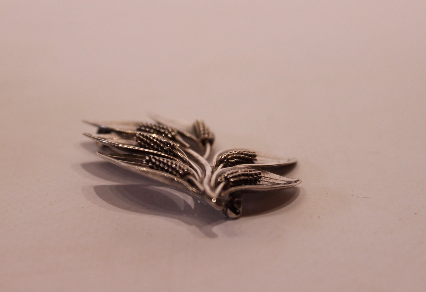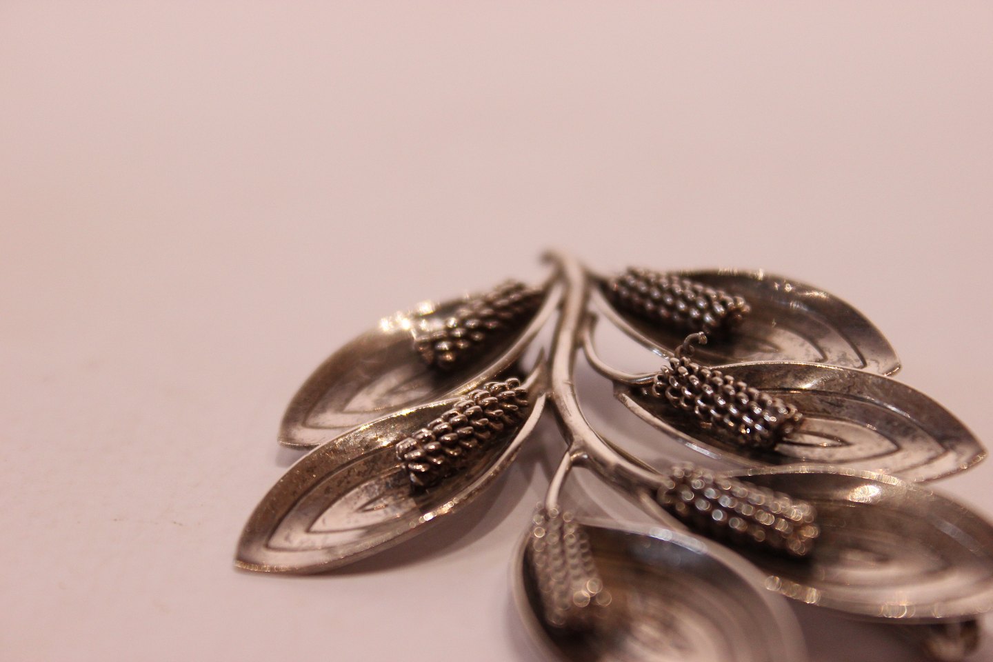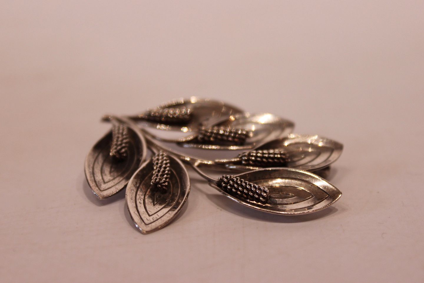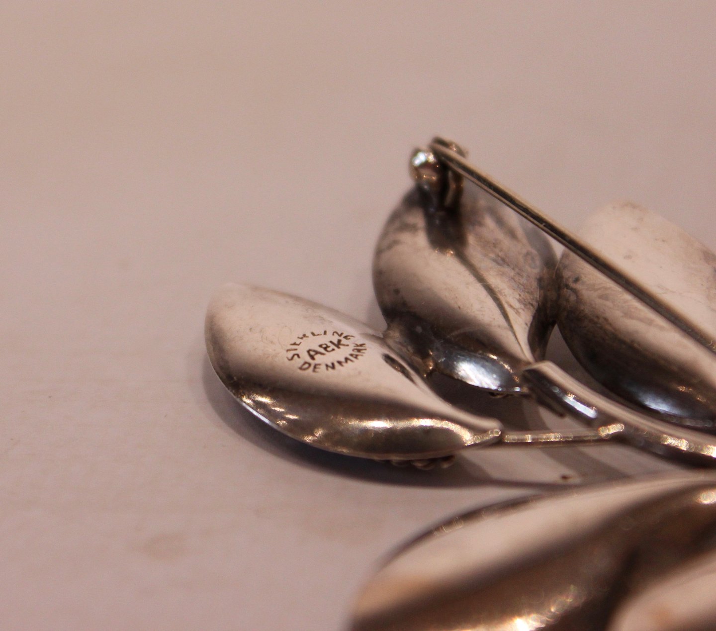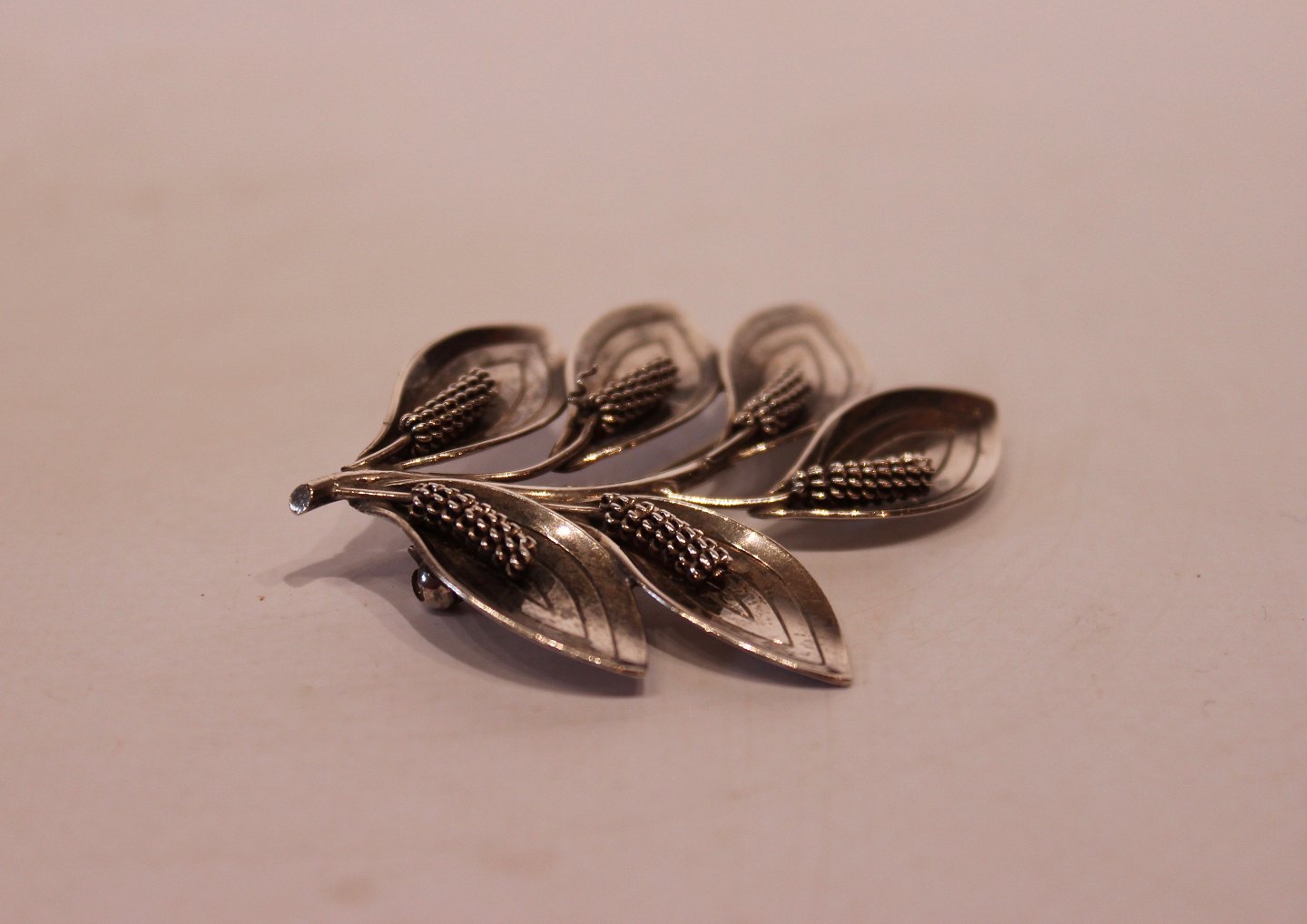 Bladformet broche af sterling sølv, stemplet A&K.