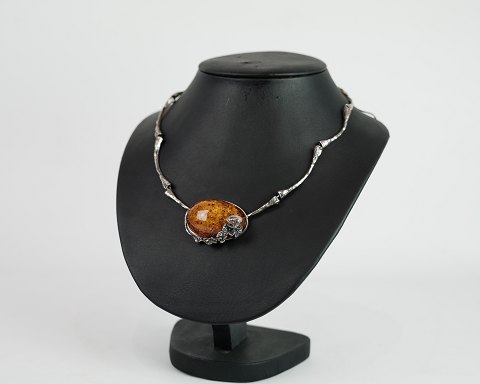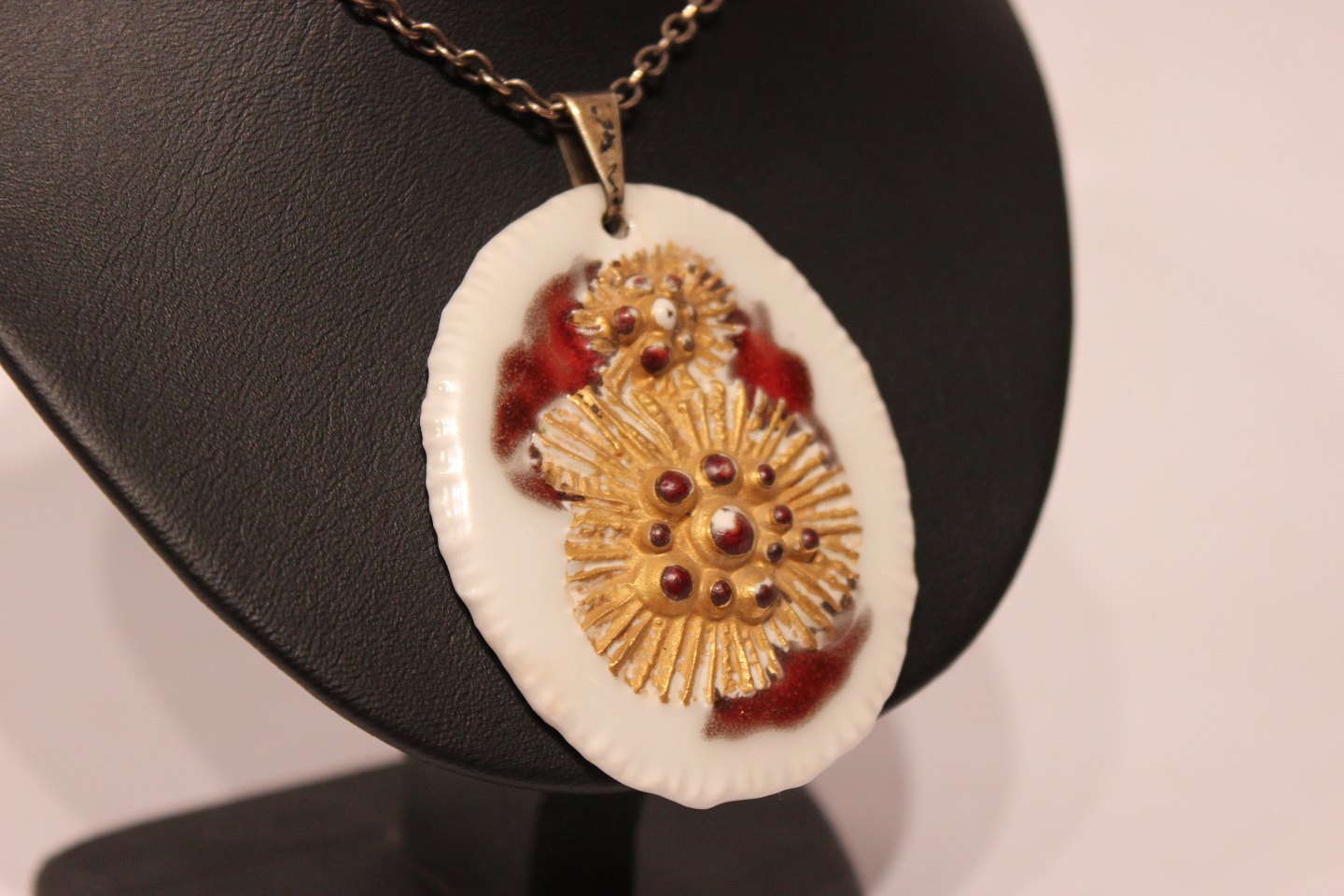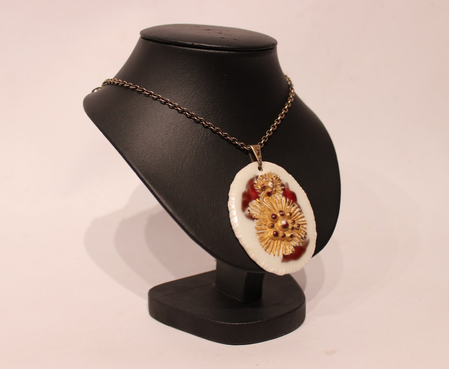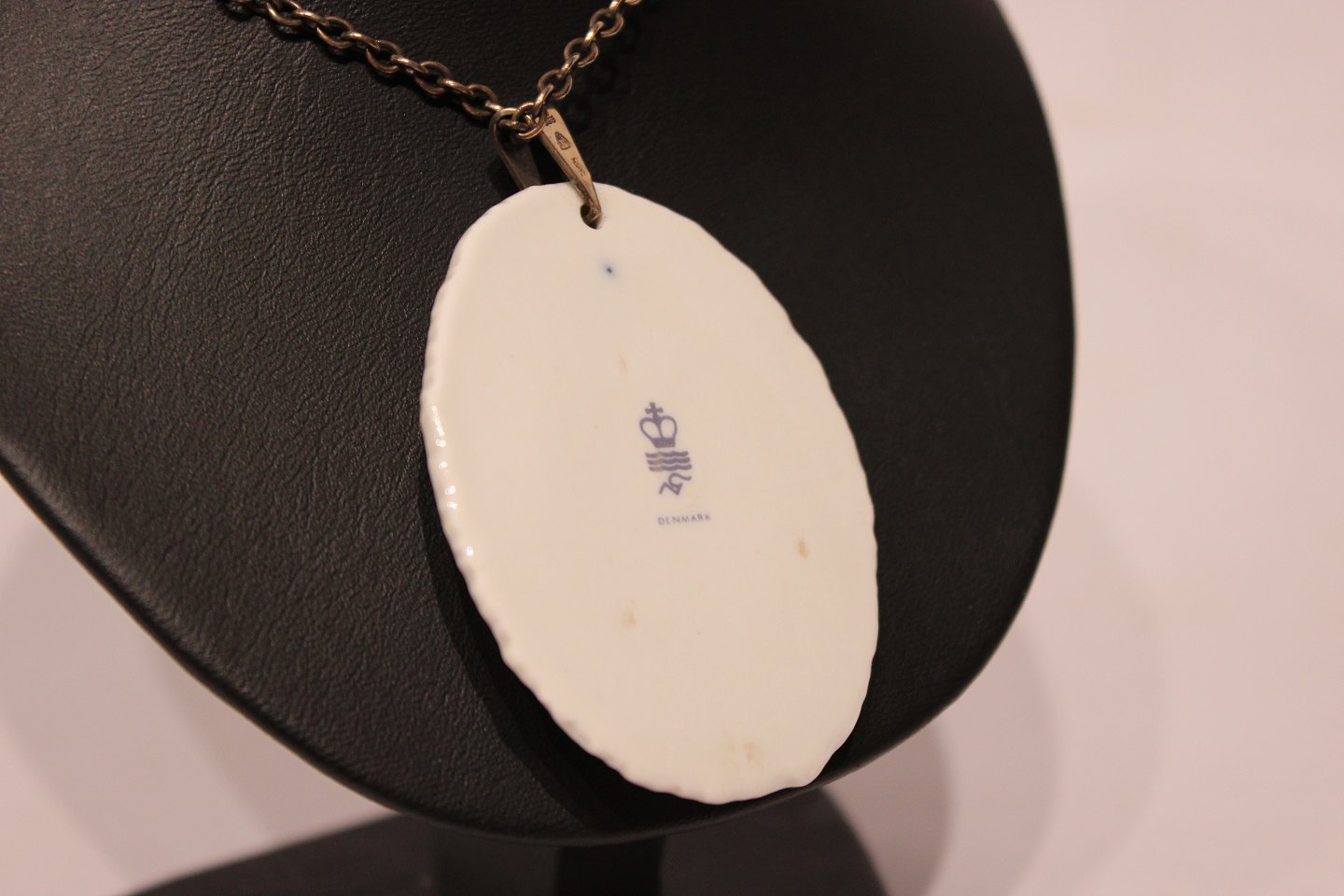 Halskæde af sølv med stort porcelænsvedhæng af Royal Copenhagen.