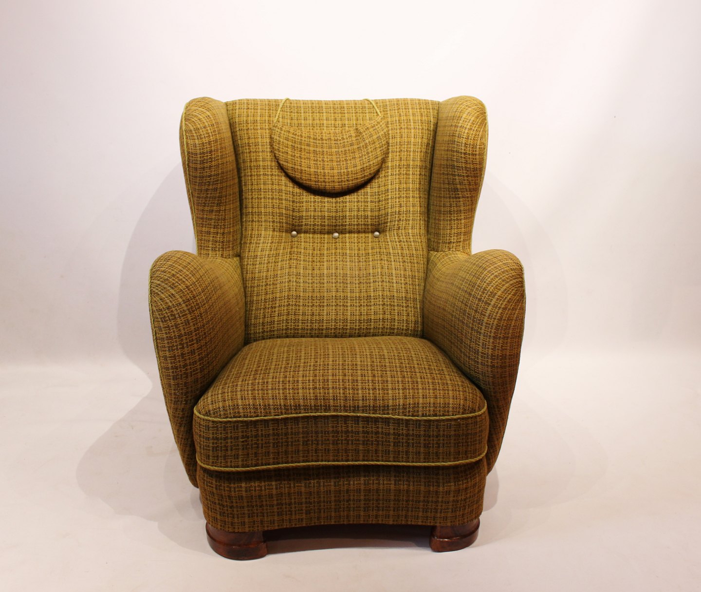 SoldEasy chair upholstered in dark green wool fabric,the chair is of danish design from the 1930s and in great vintage condition.