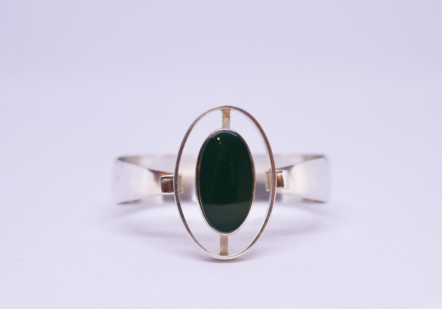 Armring af 925 sterling sølv dekoreret med stor jade sten af N.E. From. Smykket er i flot brugt stand.