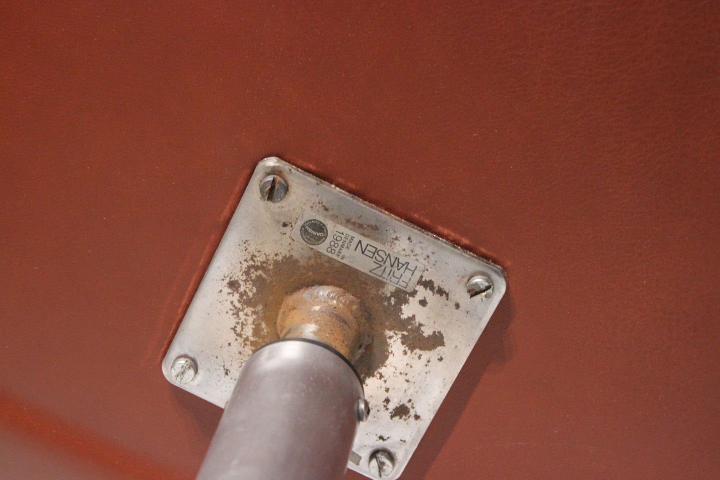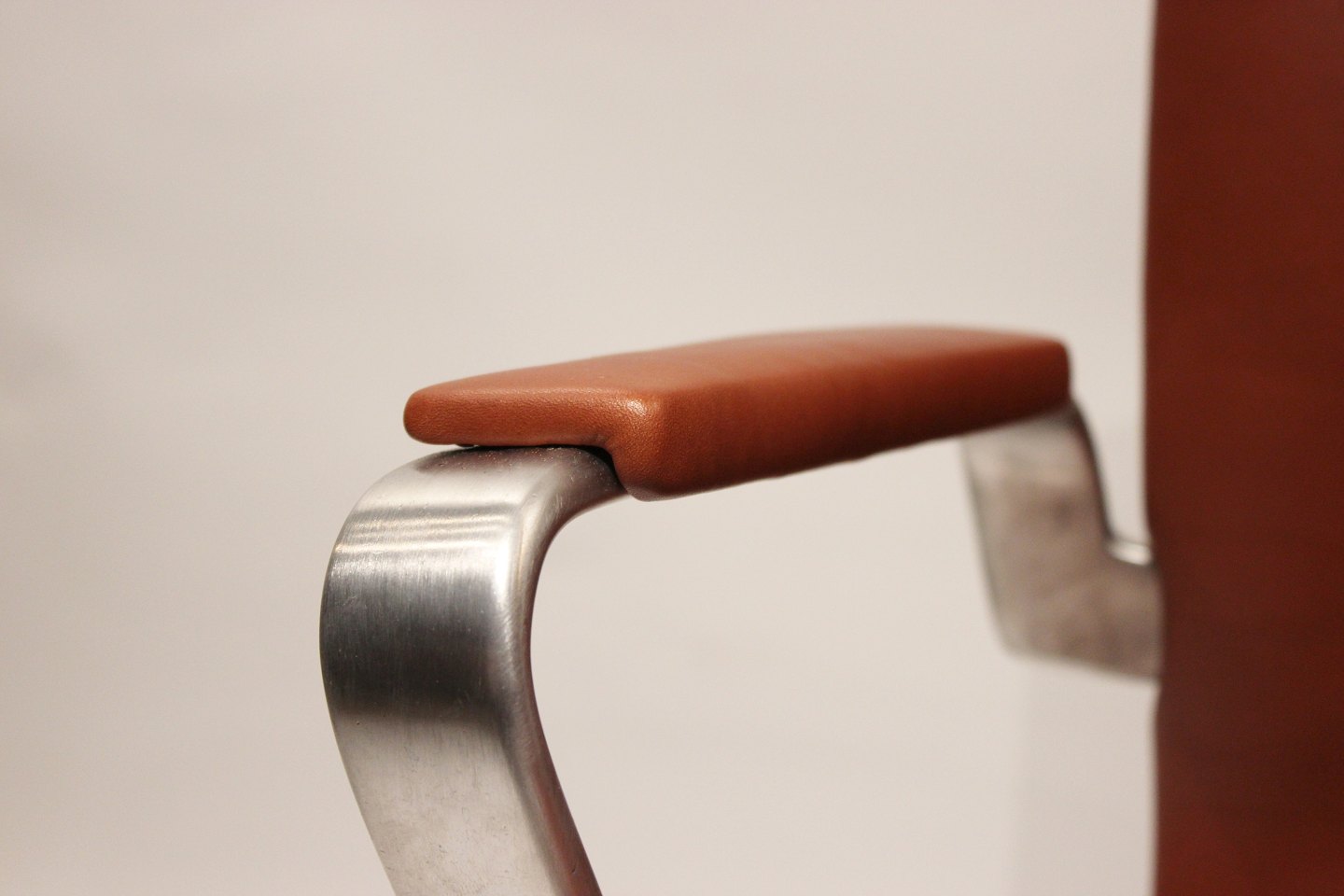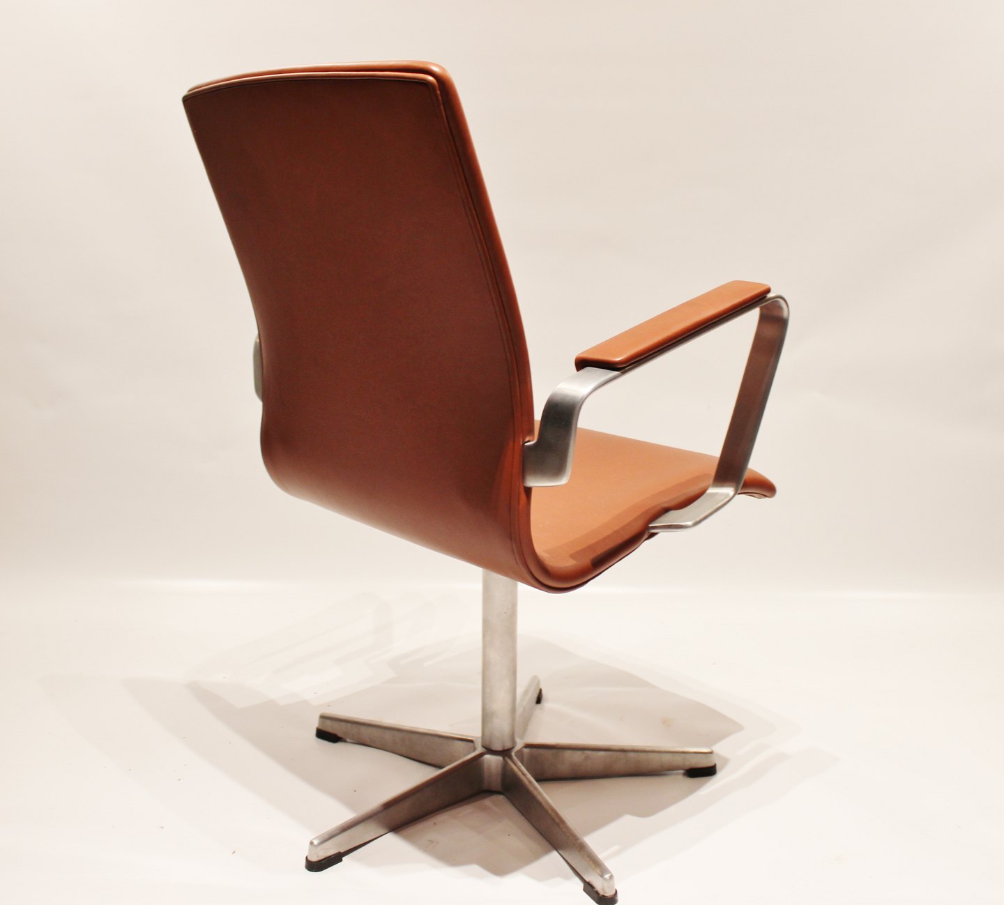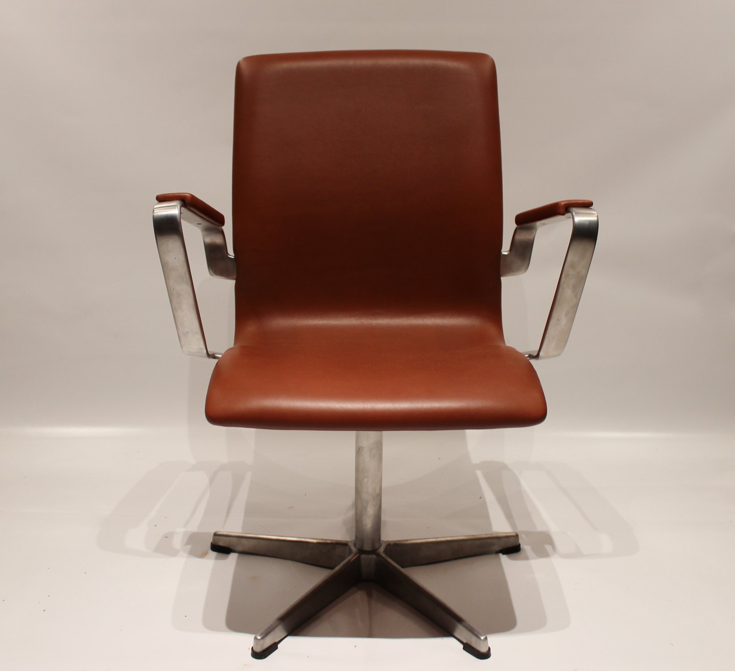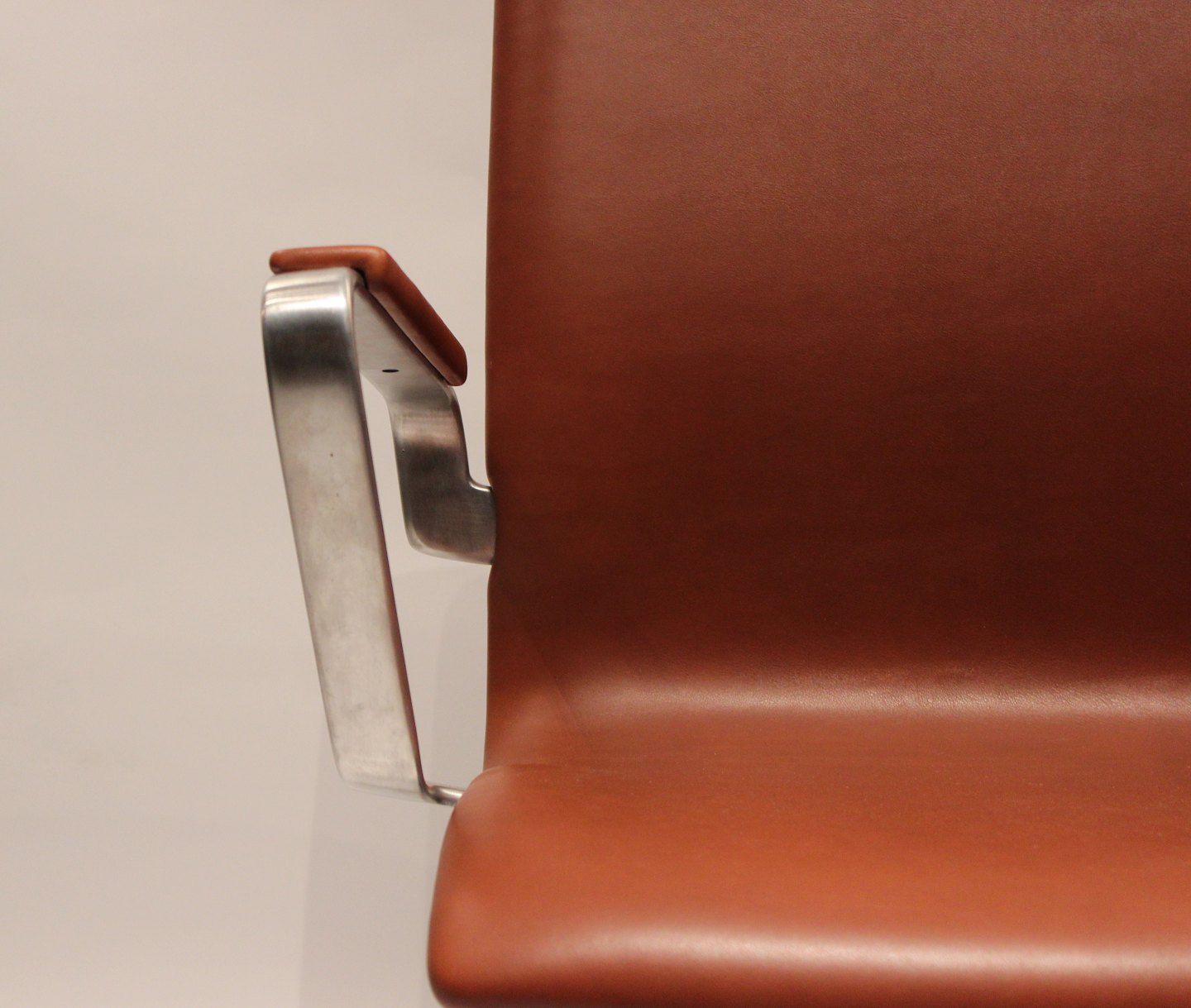 Oxford classic kontorstol, model 3271, polstret med anilin læder og med armlæn, af Arne Jacobsen og Fritz Hansen, 1988.