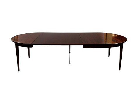 Lænestol polstret med hvidt uldstof og læderknapper, og ben af mahogni. Stolen er af dansk design fra 1930erne.