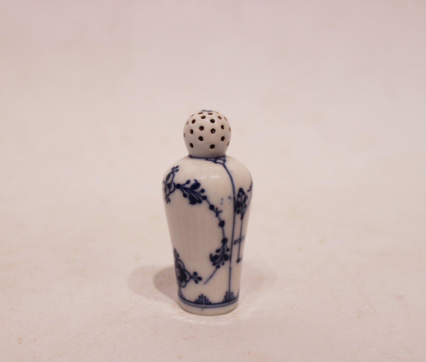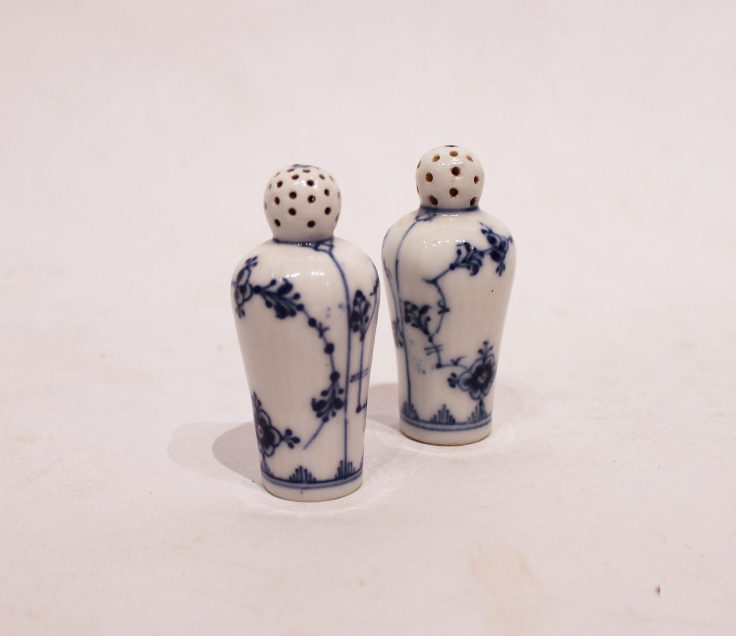 Kgl. musselmalet riflet sæt salt og peber bøsser, #1/439.