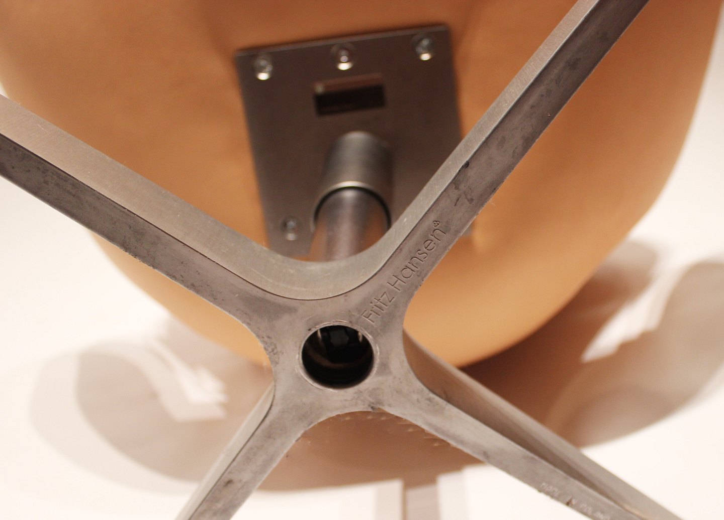 This version of the Swan Chair is made from vegetal leather, which not only adds a luxurious feel, but also contributes to the chair's durability and aesthetic appeal. Fritz Hansen's continued production of this classic chair underscores their commitment to preserving Arne Jacobsen's vision and legacy in furniture design.