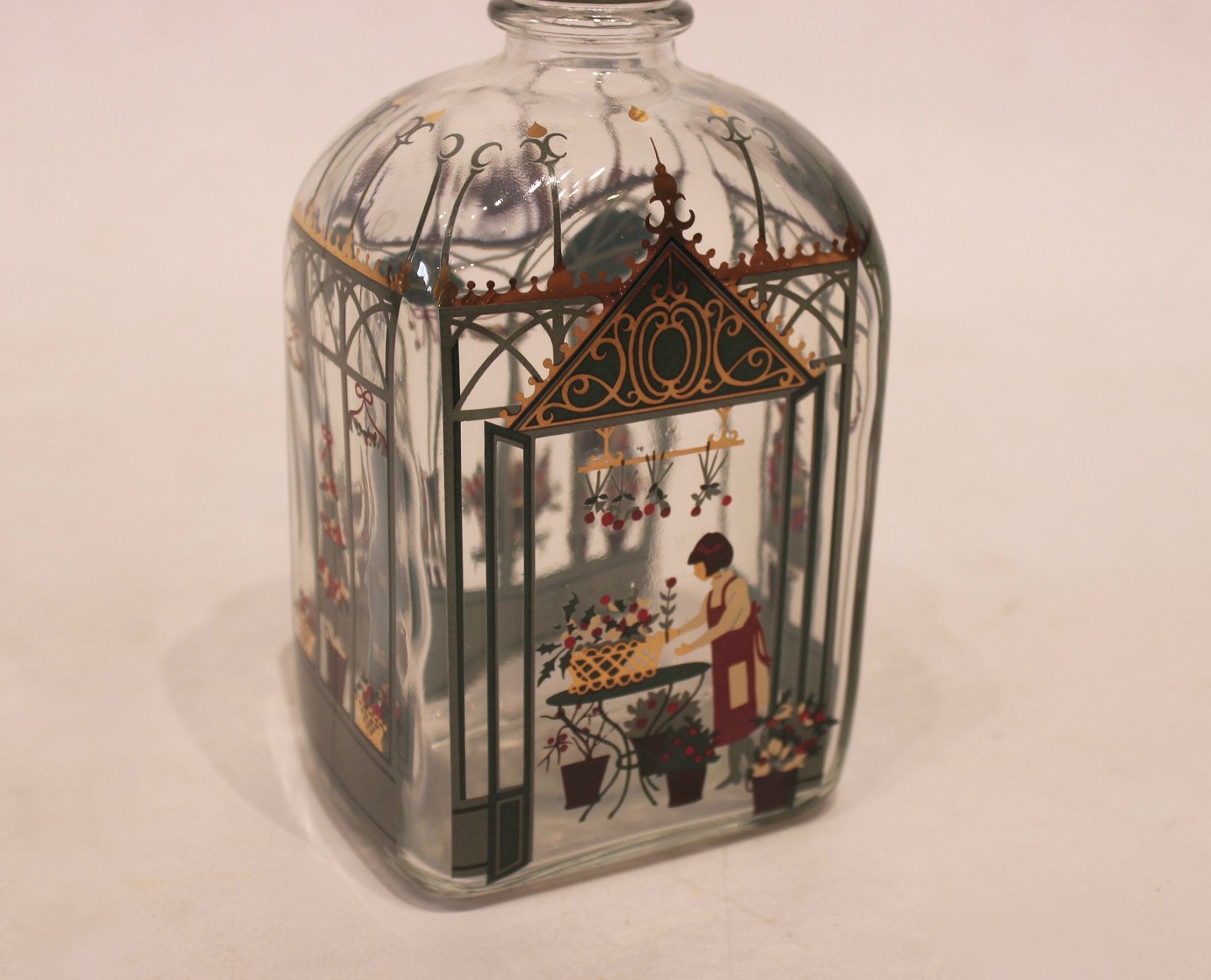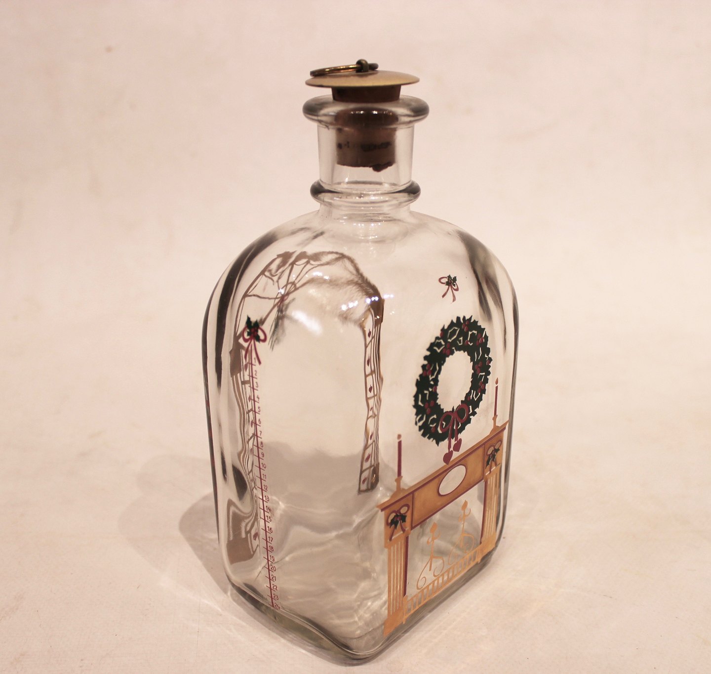 SoldA pair of christmas decanters, beautifully decorated , designed by Jette Frölich for Holmegaard in 1981. The decanters are in great vintage condition and we have more in stock.