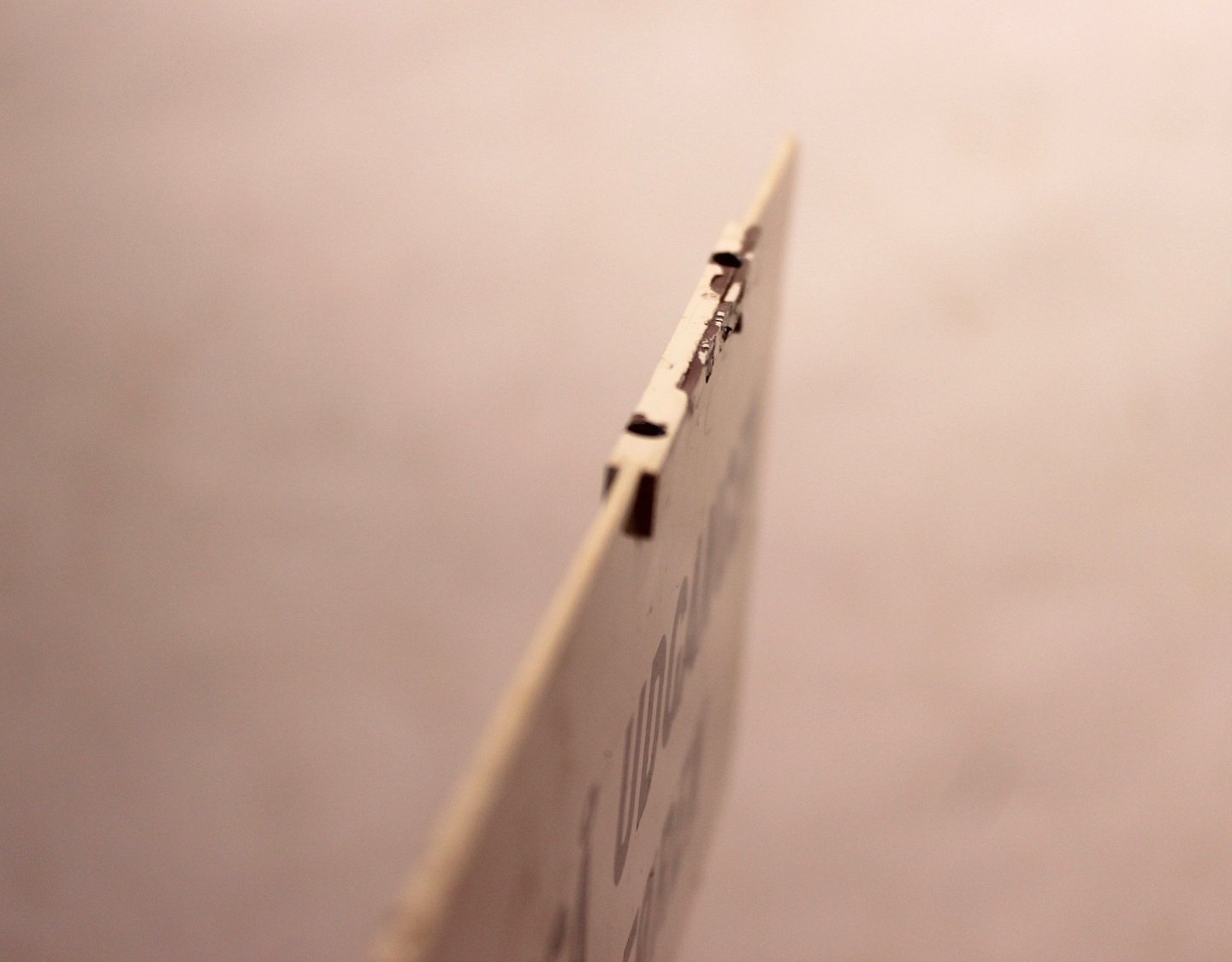 Antique white metal sign used in busses, "use also the exit at the driver's end". The sign is in great vintage condition.