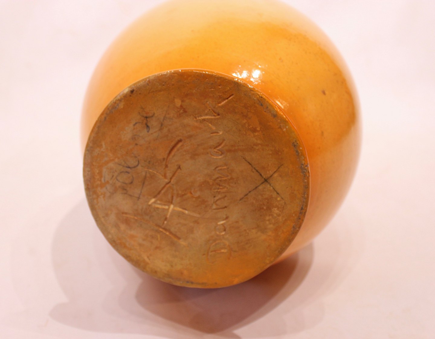 SolgtKeramik vase med mørkegul glasur af Herman A. Kähler. Vasen er i flot brugt stand.