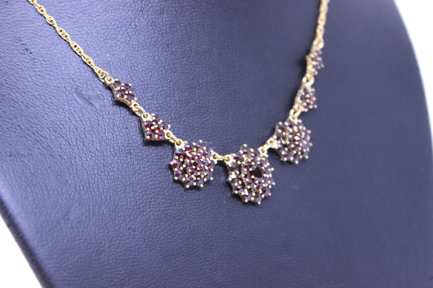 Halskæde af forgyldt 830 sølv og vedhæng dekoreret med granater.