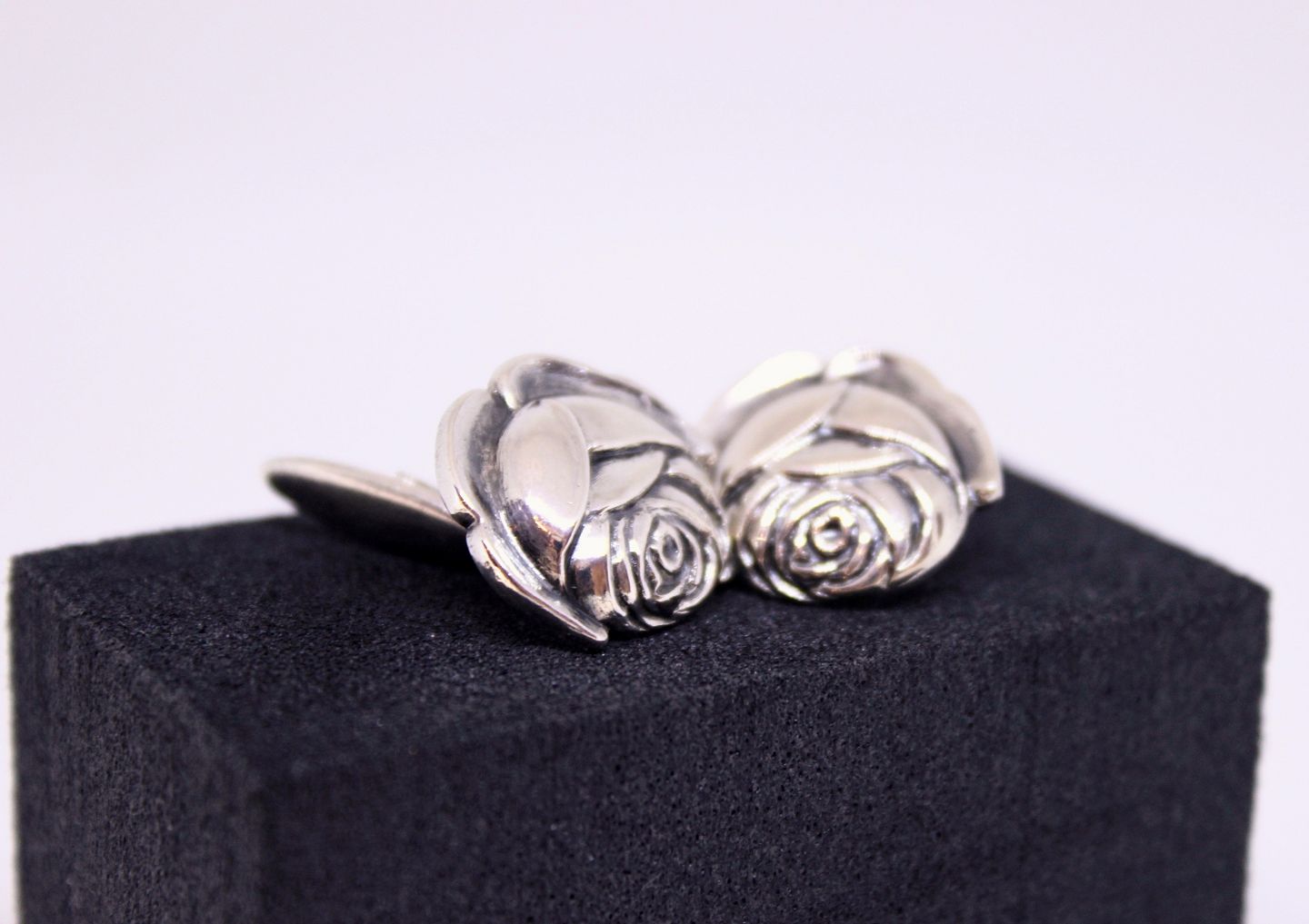 A set of cuflinks of 830 silver and shaped as roses.