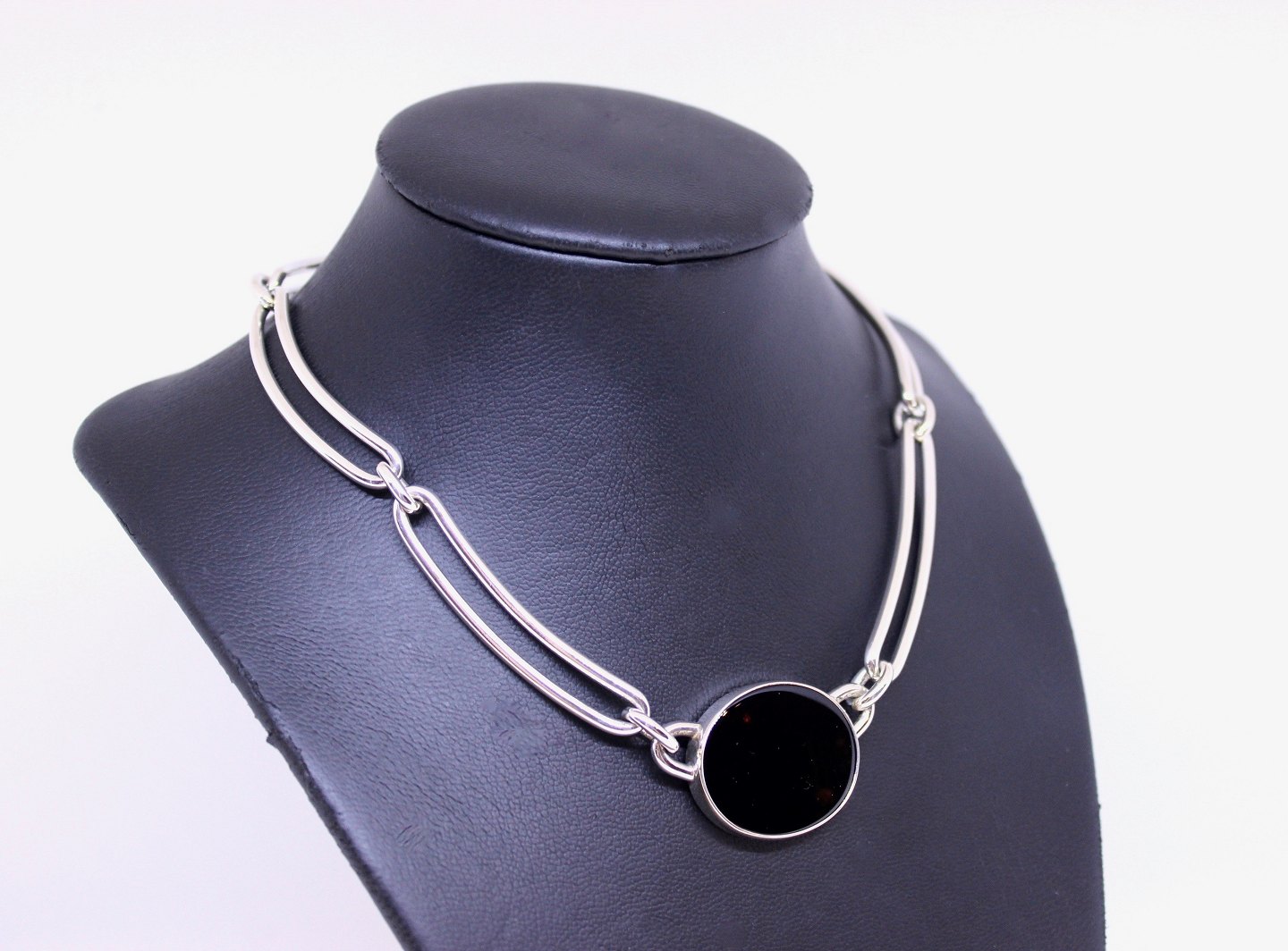Necklace decorated with large onyx stone and of 925 sterling silver by N.E. From.