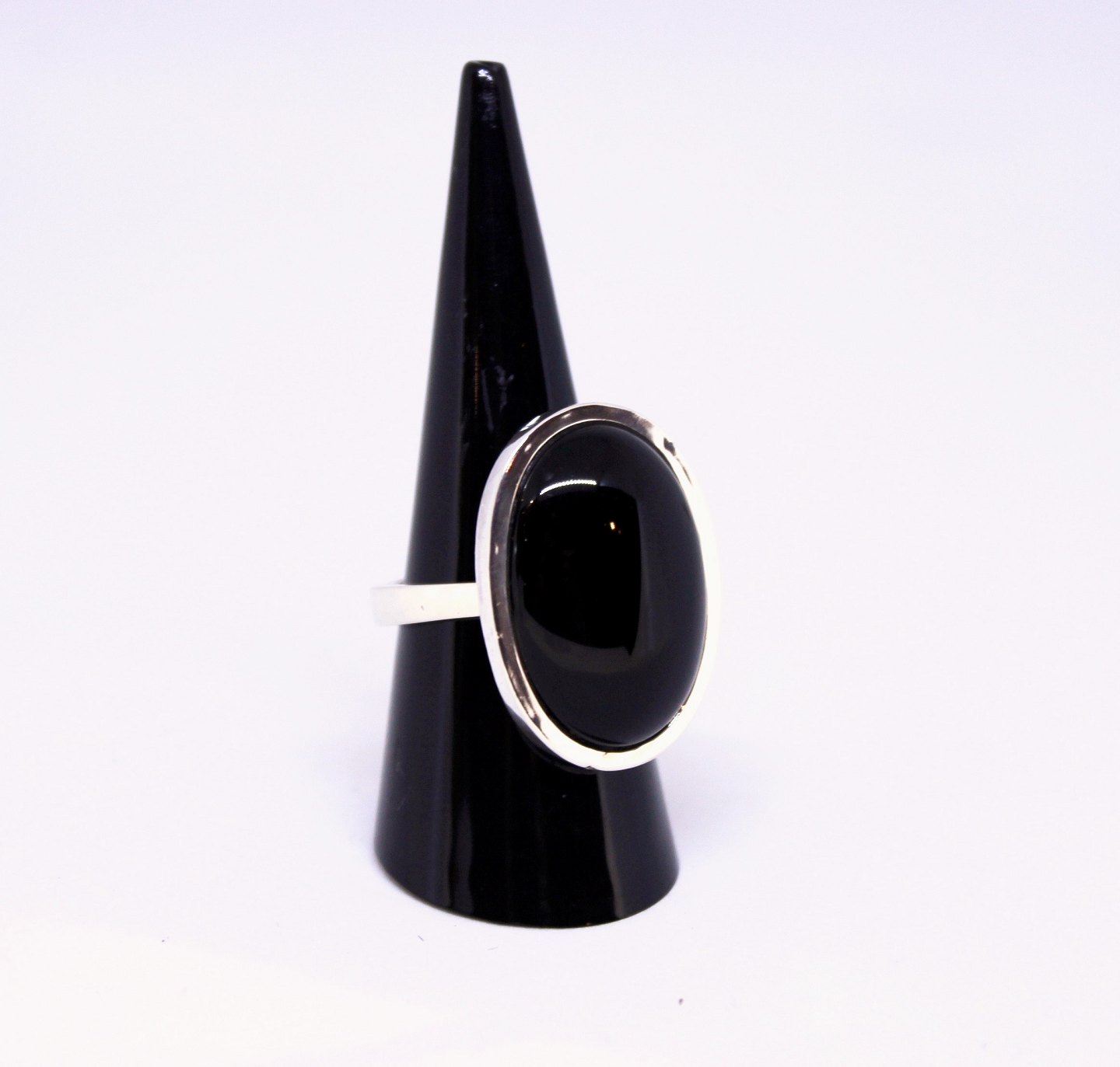 Ring decorated with large black onyx stone and of 925 sterling silver.